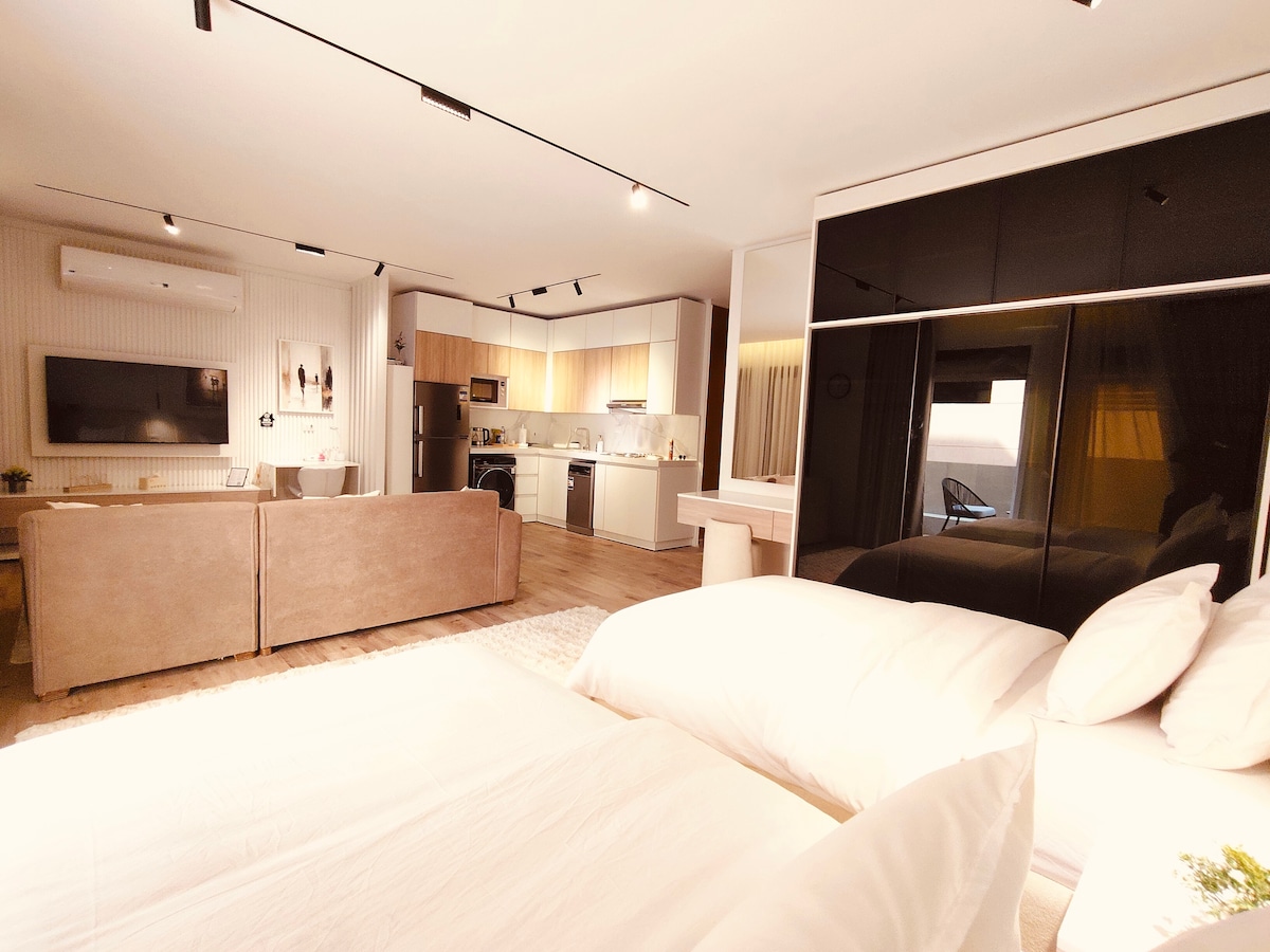 Experience hotel-style comfort in a fully private building located in one of New Cairo’s most upscale areas — just steps from top malls, cafes, and restaurants. Enjoy 24/7 staff support, daily housekeeping, fast maintenance, high-speed Wi-Fi, smart locks in every unit, and full outdoor CCTV coverage. Perfect for both business and leisure travelers seeking comfort, privacy, and security.