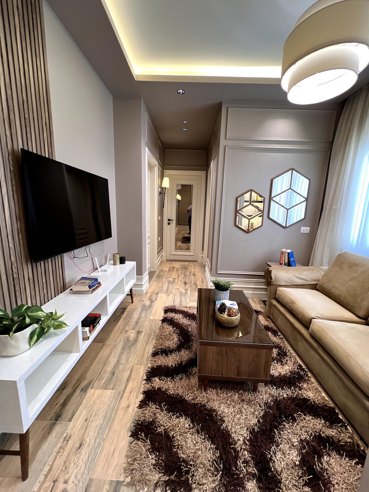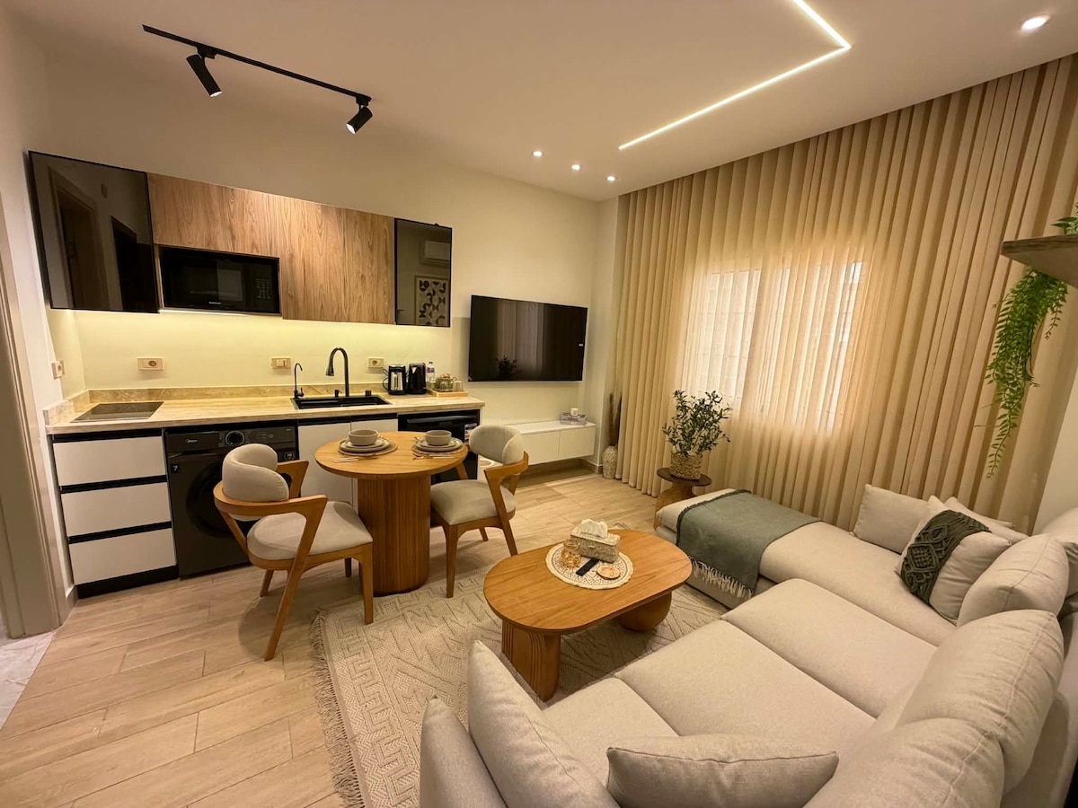 Experience modern boho luxury in this brand-new (Oct 2025) apartment located in the prestigious West Golf Extension, New Cairo — just minutes from 5A Walkway, Cairo Festival Mall, and Katameya’s vibrant spots. Enjoy presidential master bedroom, 4 Smart TVs, concealed A/C, electric shutters, and all-new appliances in a bright, elegant space. Perfect for guests seeking comfort, style, and an upscale Cairo experience.