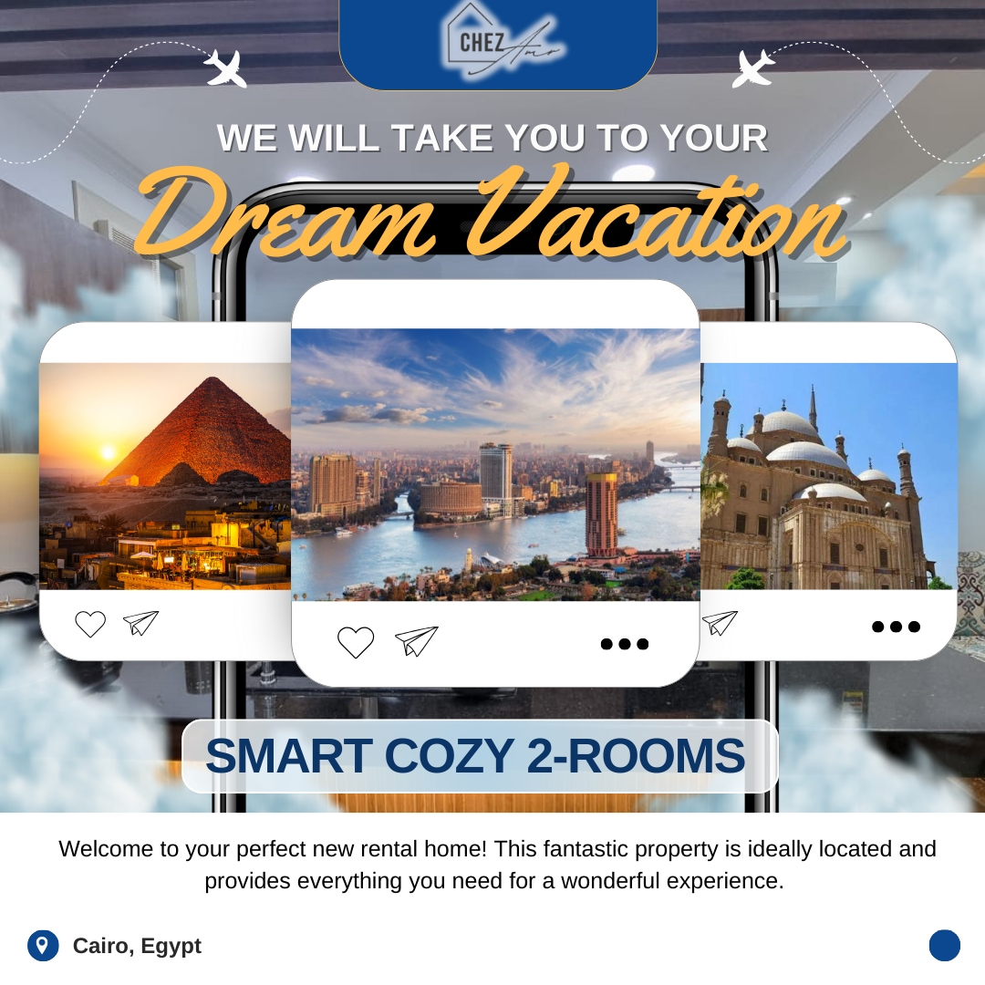 Escape the hustle and bustle of the city and unwind in this tranquil 90-square-meter open-layout studio. Enjoy spacious living, a comfortable king-sized bed, and an unmatched fully equipped kitchen. Location: Just a 5-minute drive from AUC, The Spot Mall, and Point 90 Mall, 25 Minutes from Cairo Airport Message me for more details or book your stay instantly. I can help you with planning your trip, recommending authentic Egyptian restaurants, or guiding you to the hidden gems of the city.