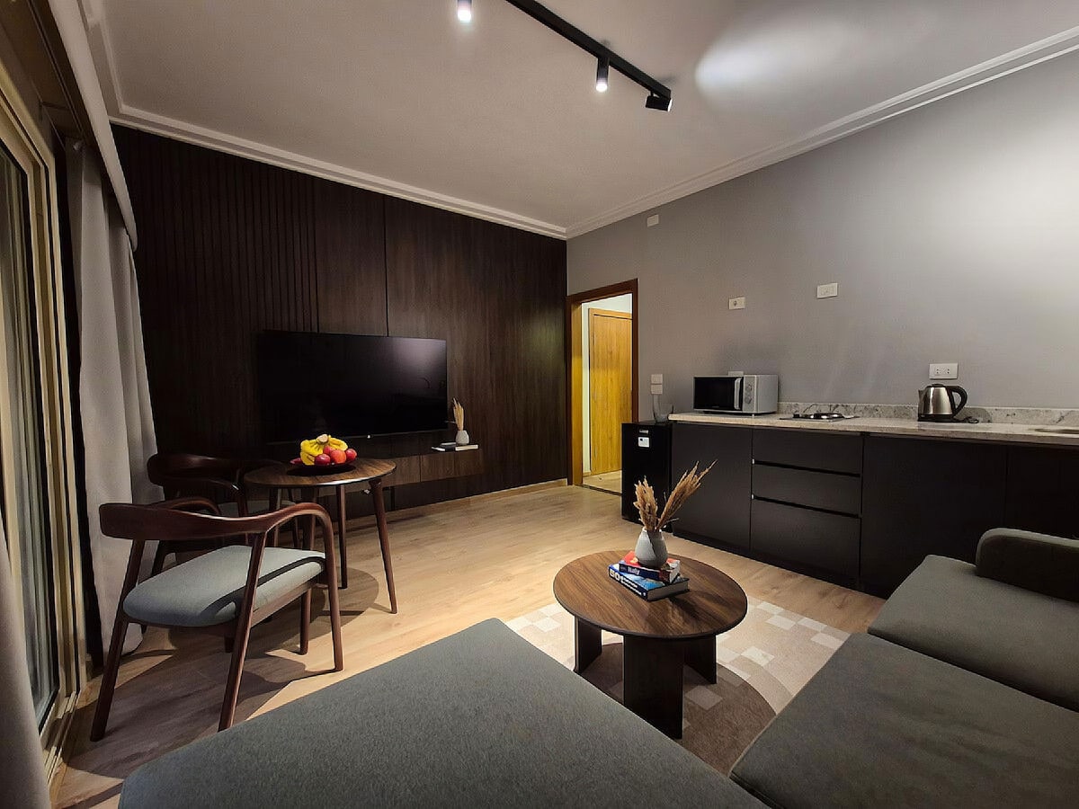 Experience hotel-style comfort in a fully private building located in one of New Cairo’s most upscale areas — just steps from top malls, cafes, and restaurants. Enjoy 24/7 staff support, daily housekeeping, fast maintenance, high-speed Wi-Fi, smart locks in every unit, and full outdoor CCTV coverage. Perfect for both business and leisure travelers seeking comfort, privacy, and security.
