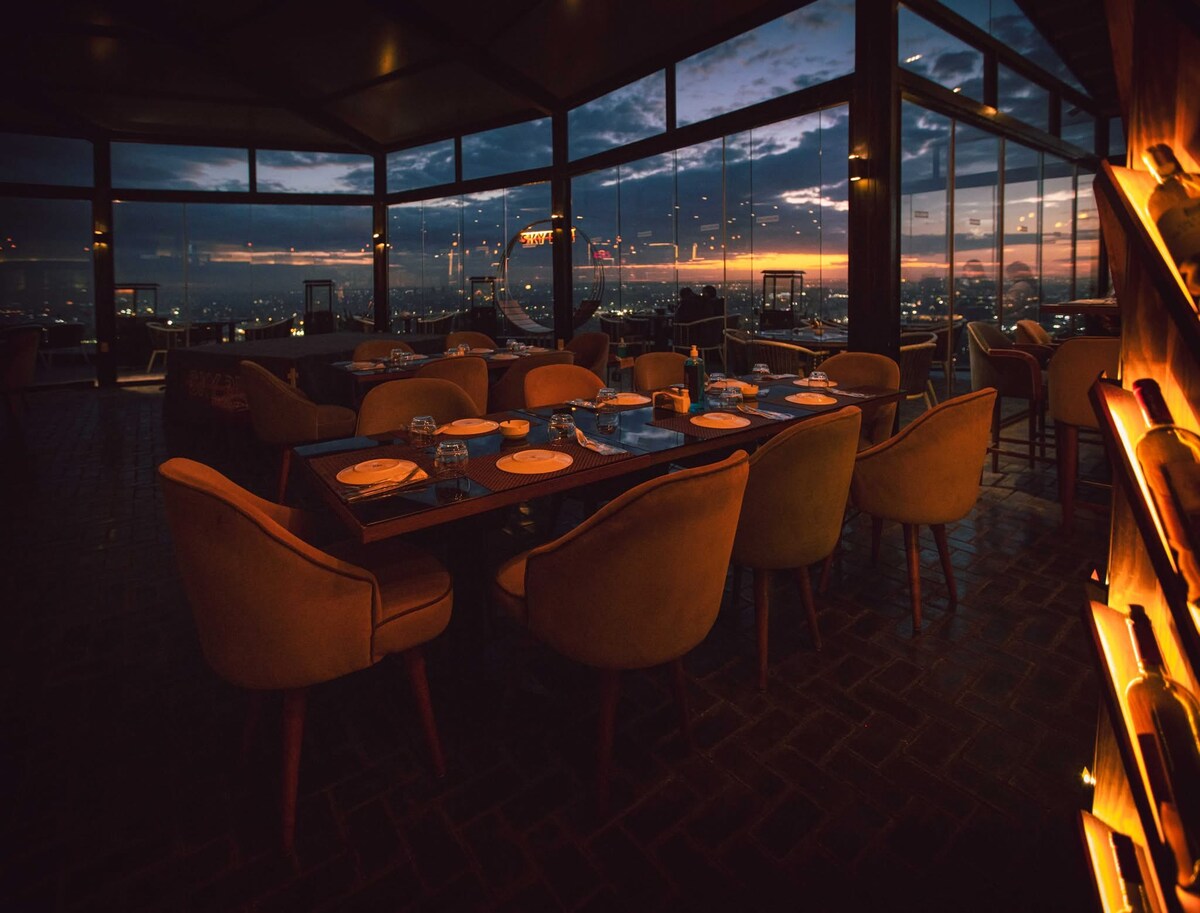 Located in a serene compound in New Cairo, our Bed & Breakfast offers a luxurious escape. The lush, expansive gardens and a stunning rooftop area provide peaceful havens for relaxation. Guests can enjoy a refreshing swim in the compound pool, a match on the tennis courts, or a delightful meal at the on-site restaurant. Daily housekeeping ensures a pristine environment, while the fridge stocked with breakfast items. The rooms, featuring comfortable beds, overlook large gardens and terraces.