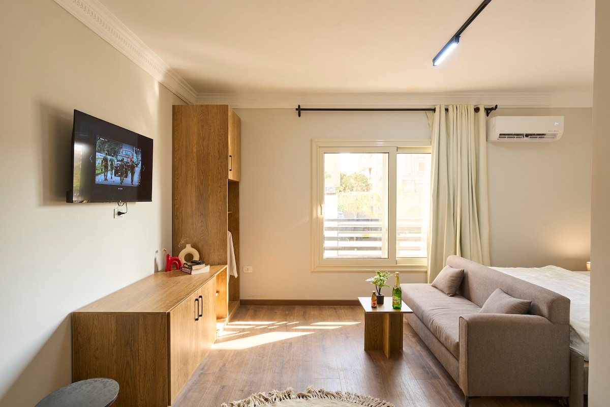 My place is close to AUC, Point 90 Mall and Cinema Complexes, Restaurants, Starbucks, Hookah Lounges, Airport. You’ll love my place because of the people, the convenience, , the neighborhood, the light, the ambiance, the location.. My place is good for couples, solo adventurers, business travelers, and furry friends (pets).