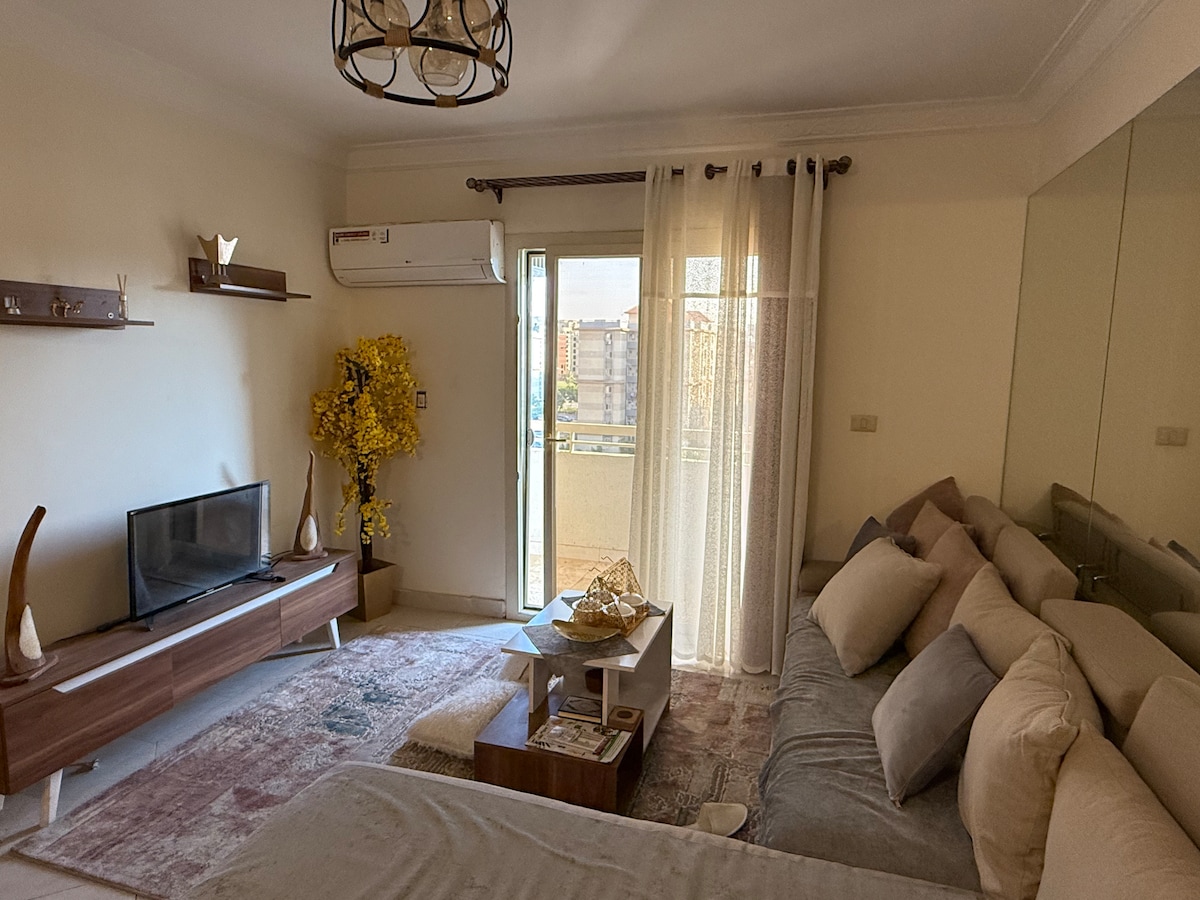 Enjoy and relax in this calm, stylish space. * minimum period 1 month Unit specifications: - 2 bedrooms - 2 bathrooms - Fully equipped kitchen - All electrical appliances - Fully air-conditioned - Internet Compound features: - Swimming pools - A collection of restaurants and cafes - Gym - Private parking - Pets allowed - 24-hour security and surveillance cameras Compound location: - Minutes from the Southern Ninety St. - Minutes from the American University - 25 minutes from the airport