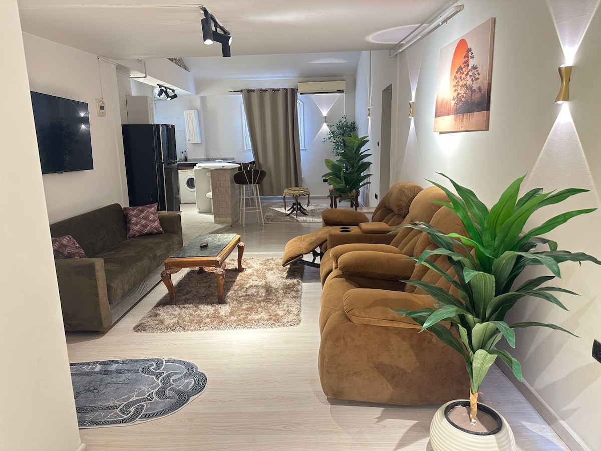 Your Perfect Stay in New Cairo! Wake up to calm Waterway vibes in this modern, cozy studio. Enjoy your morning coffee by the window, binge your favorite shows on the 50” TV, or cook dinner in a fully equipped kitchen. With fast WiFi, comfy furniture, and a 5⭐ host rating, this spot is perfect for solo travelers, couples, or small families looking for peace and style in the heart of New Cairo.