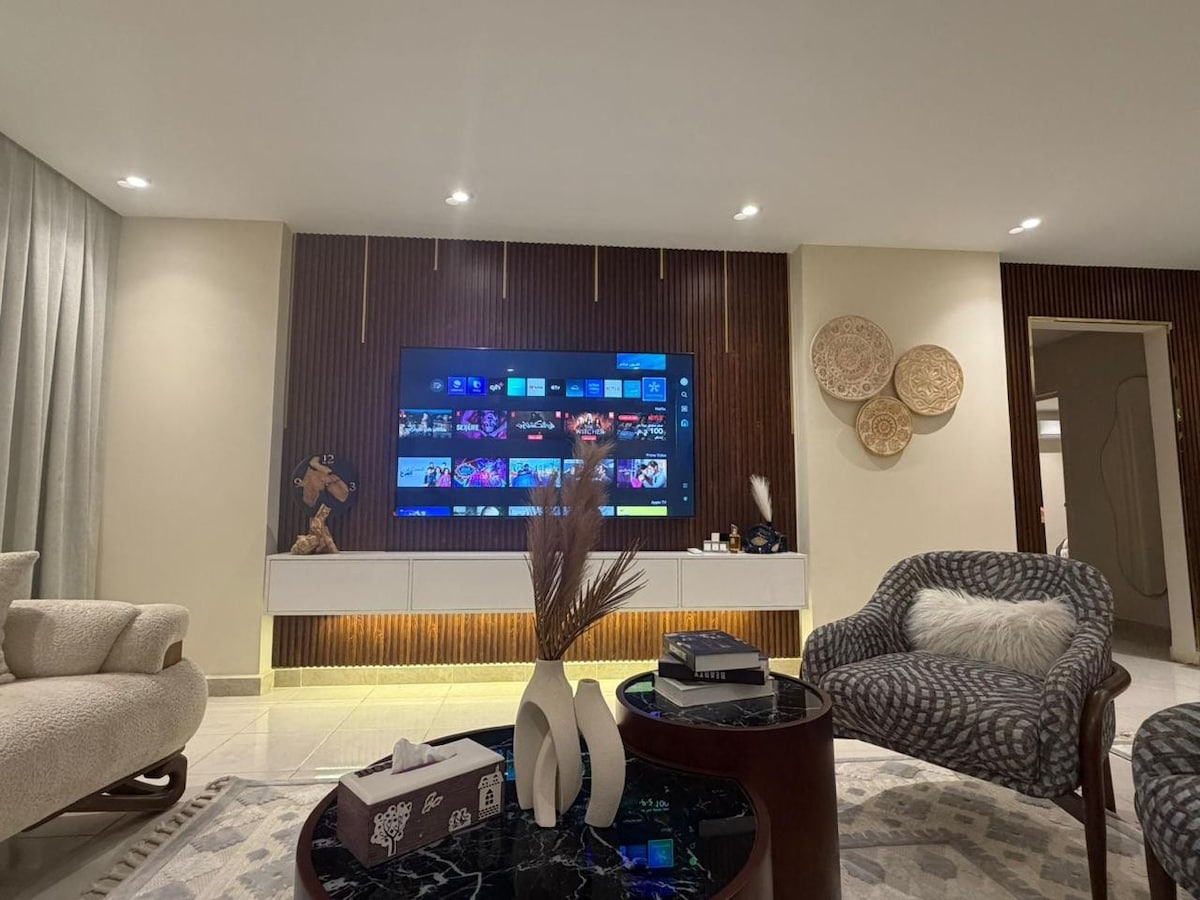 Enjoy a stylish experience at our centrally-located penthouse, in the heart of New Cairo. Very close to Cairo Festival City, 5A by Waterway mall, shopping malls, restaurants, and RingRoad. We love to stay at places that respect privacy and good energy, that's what you'll feel when you enter the house. You will enjoy the fresh air at the roof with warm lighting and cozy sitting, and you'll find peace inside the house with all brand new furniture, coffee machine, smart TV and full AC