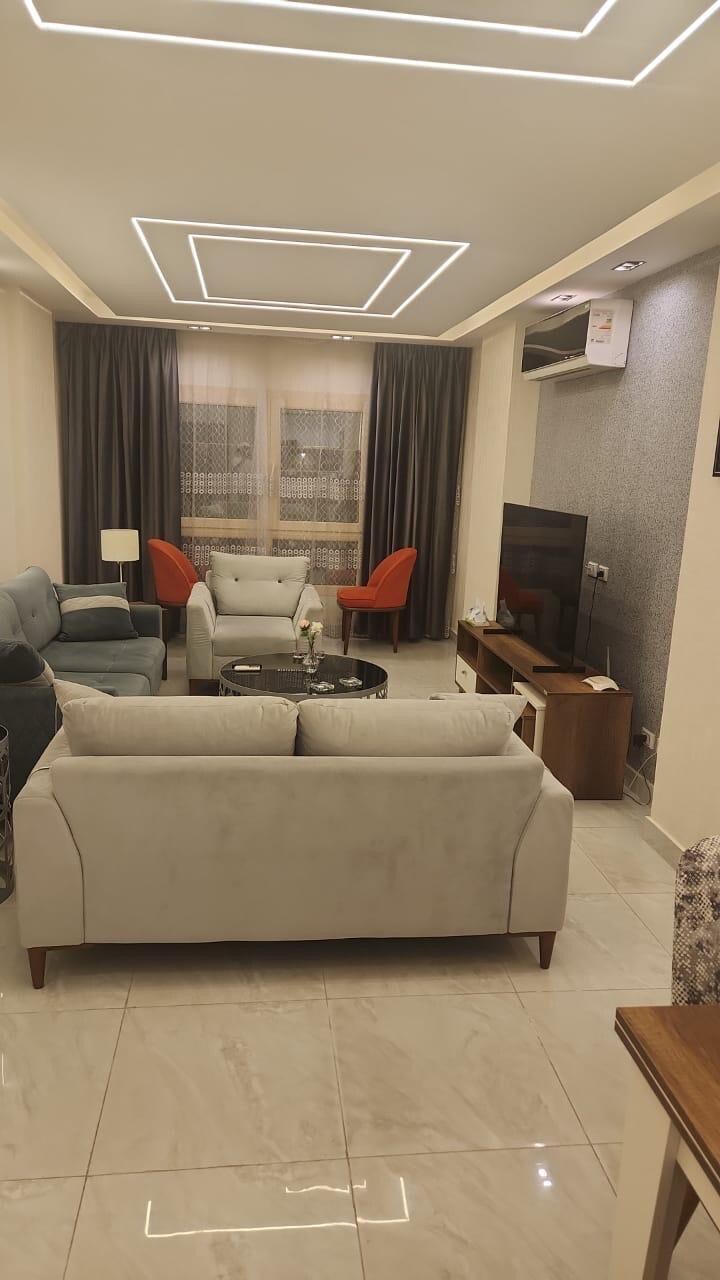 Nicely furnished modern 2 bedroom apartment in quite and class Palm Hills “The Village Gate” gated community in the heart of New Cairo and within five minutes to many universities like the American university in Cairo and the future university beside many Class A shopping malls like Point 90 mall and Cinema Complex and the Spot Mall it’s also within less than 30 minutes from Cairo international airport, Cairo downtown and Egypt’s New Administrative Capital. In-House housekeeping and maintenance