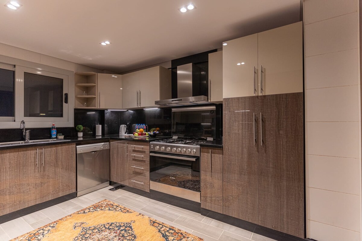 Welcome to our Ultra Modern Airbnb place in central New Cairo! This stylish flat features two bedrooms with three beds, accommodating up to four guests. Enjoy a sleek bathroom, fully equipped open style kitchen, and a spacious living and dining area. Step onto the balcony for serene neighborhood views. Located near Garden 8 and Water Way Malls, with easy access to Al-Rehab City. Experience luxury and convenience in New Cairo! Book your stay now for an unforgettable memory in this vibrant city.