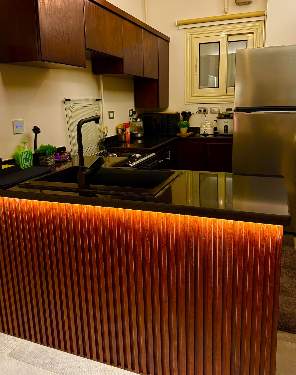Welcome to Cherry Blossom, a cozy and stylish apartment in New Cairo’s Fifth Settlement. Enjoy rare in-room features like a personal gym corner, dedicated workspace, and a relaxing reading nook. The apartment is equipped with two high-speed fiber-optic Wi-Fi sources for uninterrupted connectivity. With a comfy queen bed, kitchenette, smart TV, and a peaceful patio, it’s perfect for business trips or quiet getaways. Just minutes from 90 Street, top malls, cafes, and all essentials.