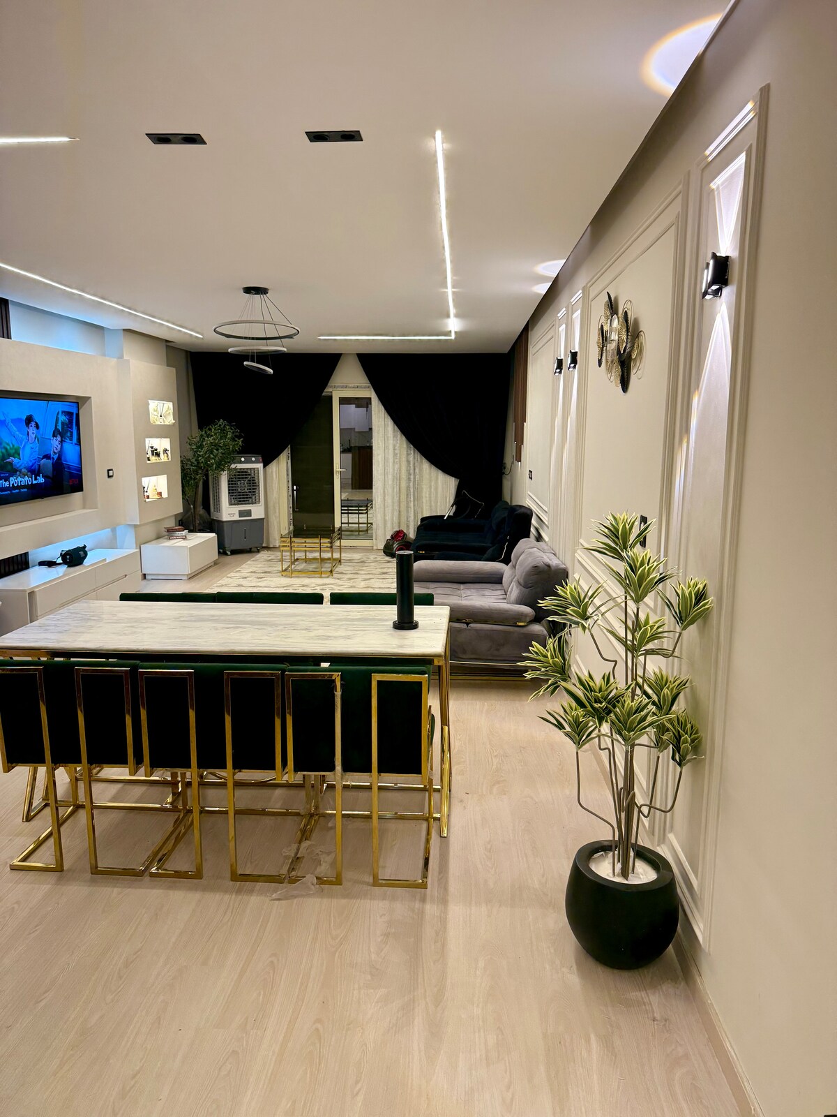 Spacious 250 sqm Apartment in a Secure Compound 🌟 Enjoy your stay in this modern, fully furnished 250 sqm apartment located inside a gated and secured compound, just 2 minutes from Mivida and Hyde Park. ✨ Highlights: • Spotlessly clean & well-maintained • Fully equipped with everything you need • High-speed Wi-Fi • Stylish, almost brand-new furniture • LG Sound Bar for an enhanced audio experience • Smart TVs connected to the internet • Hair dryer • Iron Perfect for families