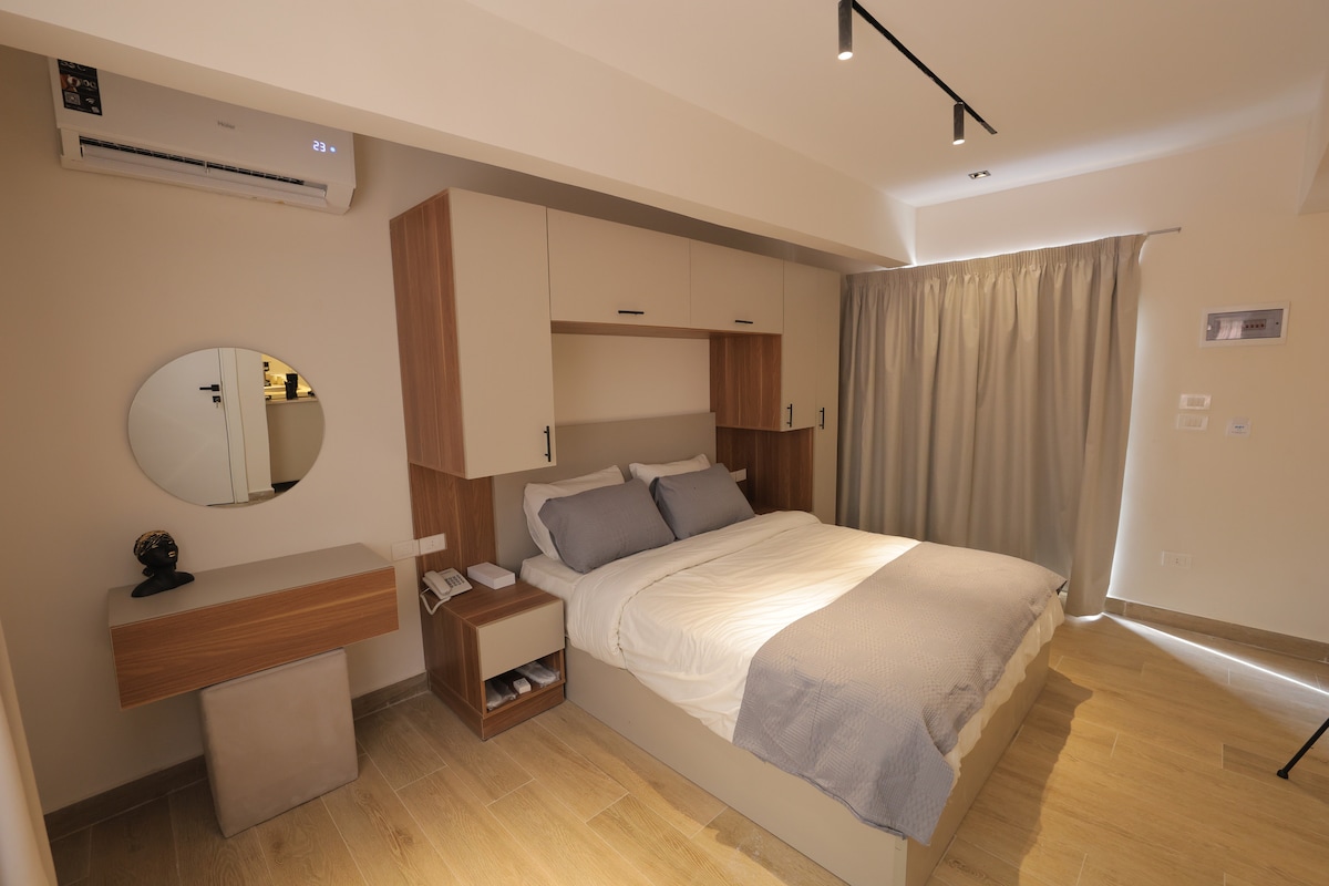 Jira Inn offers serviced apartments that combine hotel comfort with the privacy and warmth of home. _17 minutes away from CIA, minutes away from main shopping malls and social Plazas in New Cairo Daily housekeeping, maintenance, and on-site assistance ensure a smooth and quiet experience - true to Jira Inn’s promise of “hassle-free stays” Guest Access •Reception lounge •Assistance desk for housekeeping or stay support Managed by Jira Inn®, ensuring privacy, comfort, and 24/7 guest support