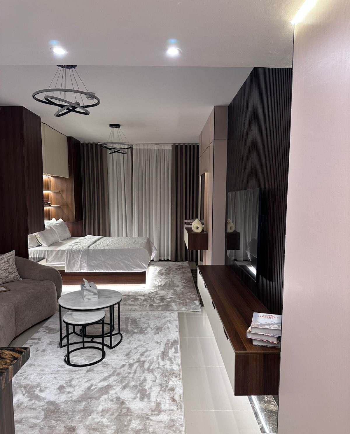 Experience premium comfort in this 5-star room at Nyoum New Cairo Tower, with a direct view of AUC. Fully serviced by Guave Stay, the space offers hotel-level amenities, exceptional cleanliness, and custom design tailored for high-quality guests. Every detail is curated for comfort, style, and a truly effortless stay.