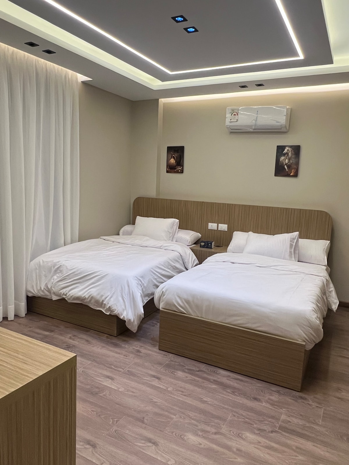 Enjoy a comfortable and spacious stay at Tamaya Hotel in Fifth Settlement, This 2-bedroom apartment is perfect for families or groups, offering privacy and a relaxing atmosphere. The apartment features two bedrooms, a cozy living area, air conditioning, high-speed WiFi Smart TV, and a private bathroom. Daily housekeeping ensures a clean and pleasant stay. Located near main roads and services, and just 13 km from Cairo International Airport (approx. 25 mins), ideal for business or leisure stays.