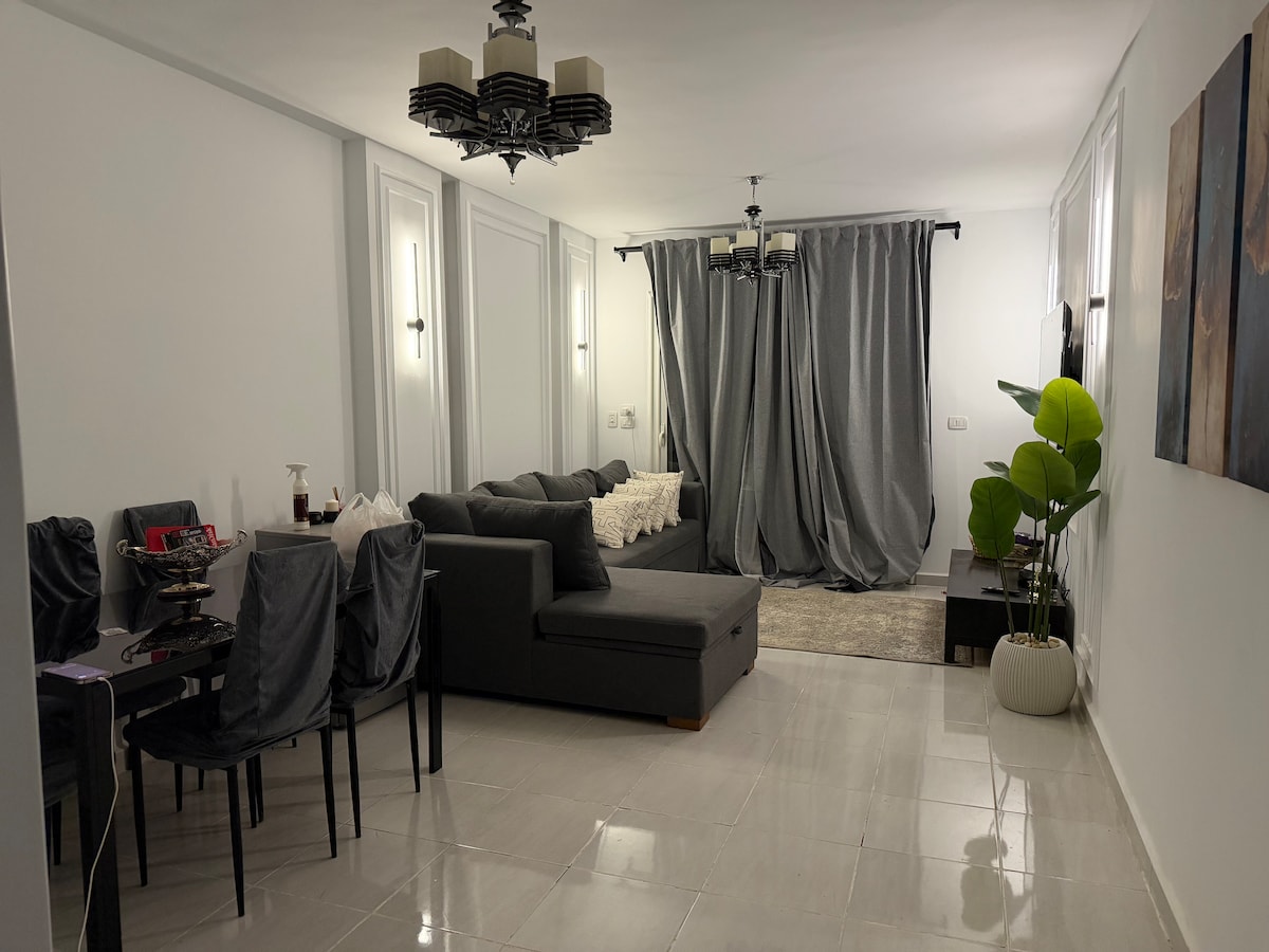 Experience ultimate relaxation at One-77, a premium stay in the heart of New Cairo, just one minute from the American University in Cairo (AUC).Designed for comfort and elegance. One-77 features luxurious furnishings, a private entrance for added exclusivity, and a refined atmosphere. Enjoy the convenience of professional housekeeping, with thorough cleaning after every checkout, as well as dry cleaning services to ensure a seamless and comfortable stay.