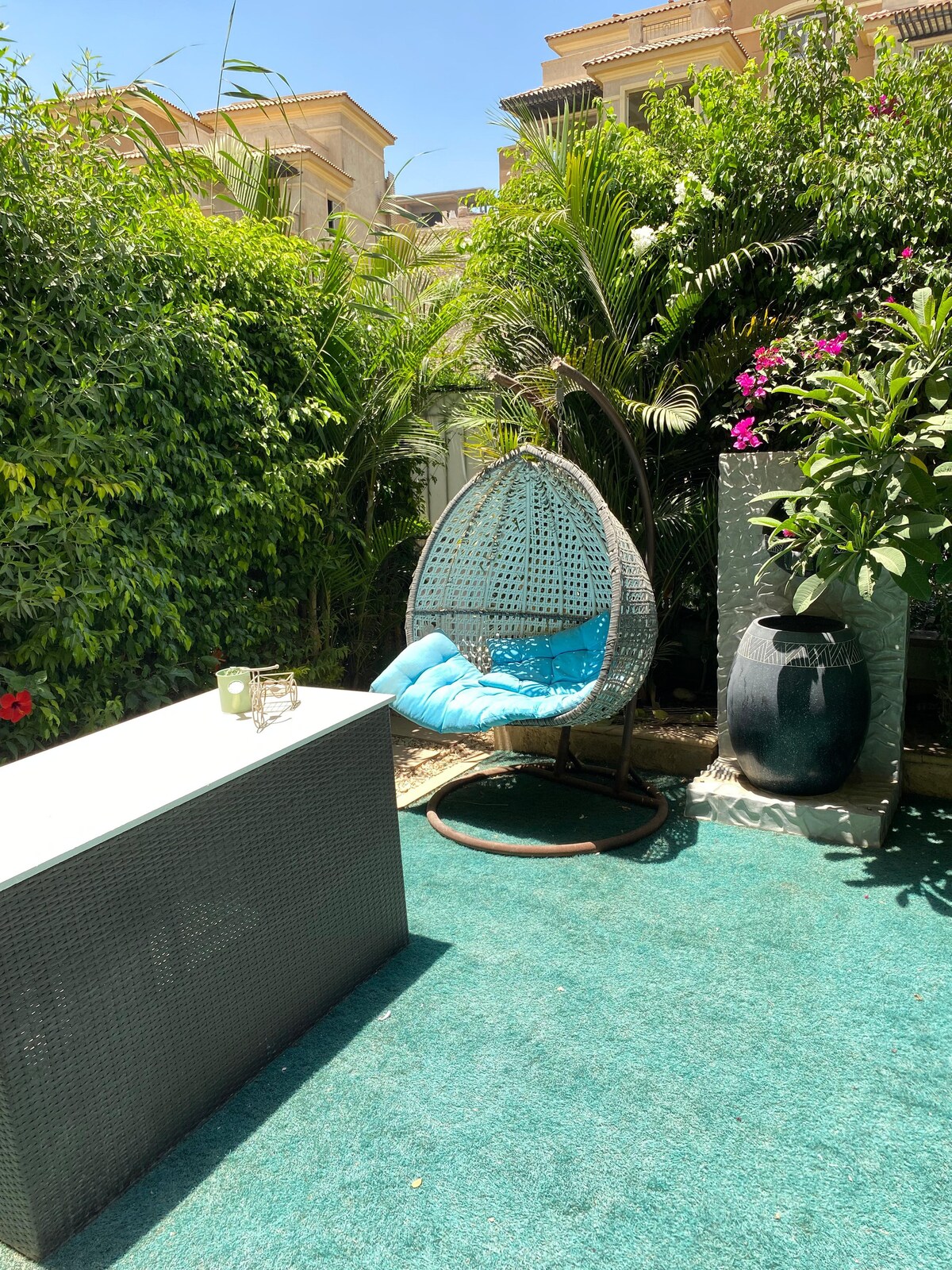Luxury Mansion with pool and Jacuzzi in New Cairo where you can Enjoy a seamless experience, definitely an experience you never want to miss out, This mansion is almost 980SQM and it consists of 4 Bedrooms and 4 bathrooms, 2 of the bedrooms are master bedrooms with a private bathroom. and an exquisite living area which has extra modern furniture, in addition to a spacious and unique private backyard overlooking a golf course where both the pool and jacuzzi are located.