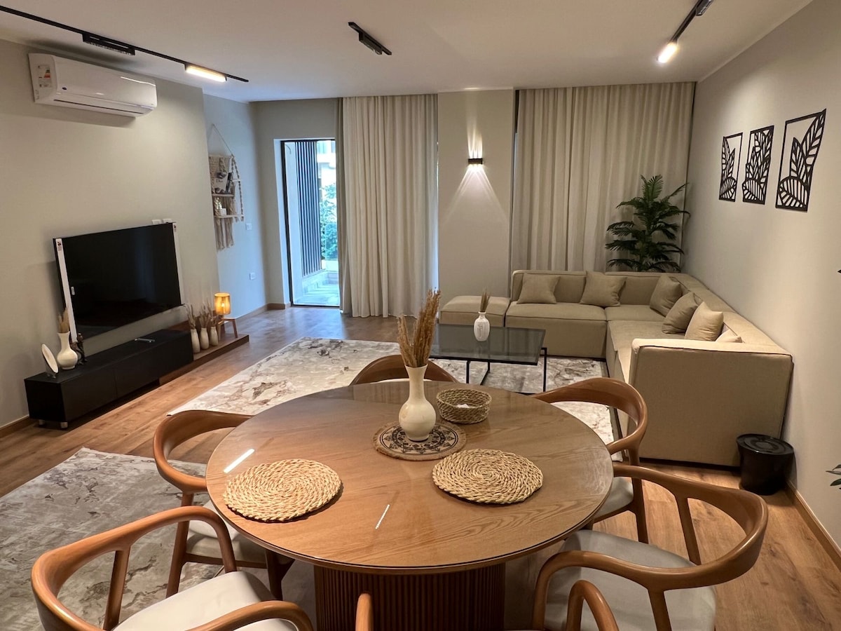 Welcome to Lake View Garden Retreat, A stylish smart home in Lake View Residence. This ground-floor apartment features a private garden, central A/C, and all-new furnishings for a modern, comfortable stay. Enjoy seamless indoor-outdoor living with garden views from every room. Perfect for relaxation or work, with high-speed WiFi and a peaceful atmosphere. Book now for a serene escape in New Cairo’s prime location!