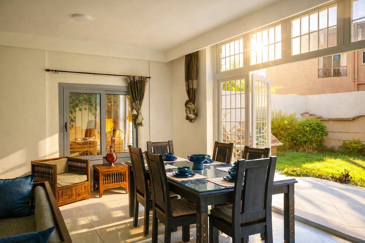 Modern 3BR Villa in New Cairo’s Fifth Settlement • Private garden & garage parking • Quiet central area near Cairo Festival City, Point 90 & Downtown Katameya • Fast Wi-Fi & full kitchen • Family & pet-friendly • Easy self check-in with smart lock • 24/7 host support — ideal for business trips or family getaways • Close to malls, cafes & parks — perfect for short or long stays ideal for families, business travelers, and long-term stays seeking comfort and privacy in New Cairo’s Fifth Settlement