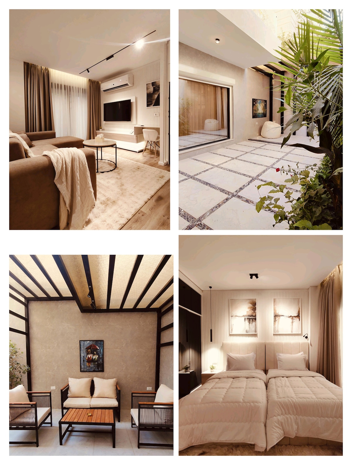 تبدو وكأنها وحدة خرجت للتو من مجلة للتصميم الداخلي، أليس كذلك ؟ هل يمكنك تخيل التواجد في واحدة من تلك الوحدات ؟ الآن أصبح الأمر حقيقة واقعة. جناح فاخر مفروش فرش فندقي بحديقة خاصة لك وحدك مزود بجميع وسائل الراحة نعمل علي استقبالك بشكل احترافي وتحقيق اقامتك الفندقية. قريب جدا من مجمع كامل من مطاعم وكافيهات وبراندات عالمية قريب من مول بوينت 90 - شارع التسعين تم الاعتماد على البساطة في هذا المسكن الهادئ والاستراتيجي. حي اسكان الجامعة الامريكية من ارقي أحياء التجمع 5 - يتميز بمستوى معيشة راقي