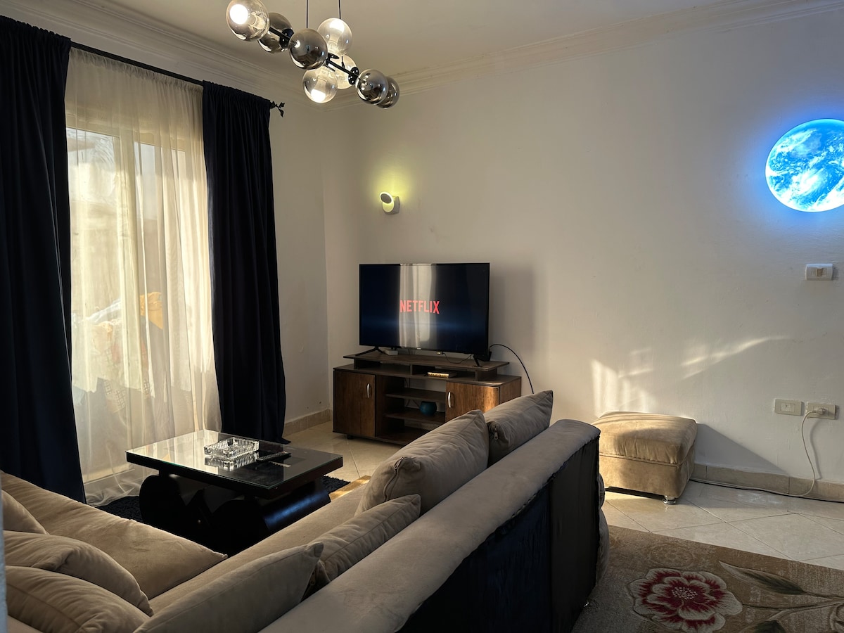 3 bedroom, 3 bathroom apartment with modern design and furniture to give you the loft feeling you yearn for. designated work spaces is the apartment where you find comfortably with unique pool and landscaping view , Have fun with the whole family at this stylish place. Near by Destinations Airport - 20 min 01 mall - 1 min Garden 8 mall - 10 min CFC mall - 15 min 5A mall - 20 min Maadi - 40 min Down town - 45 min Grand Egyptian Museum (GEM) - 45 Min