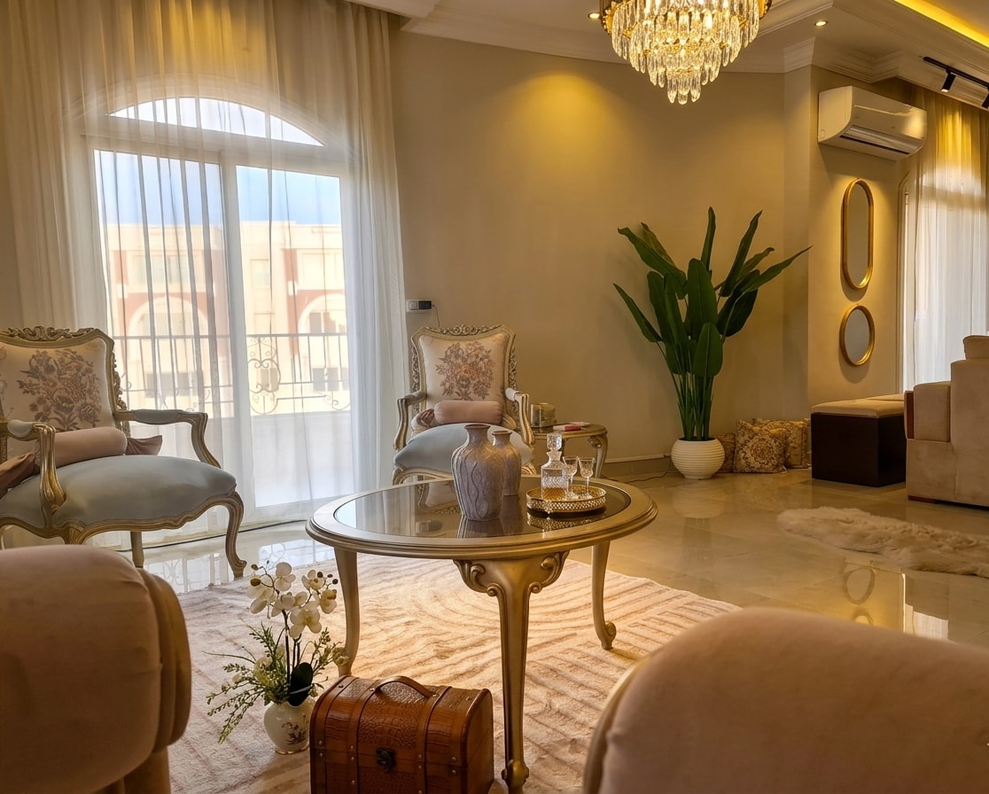 The apartment in the second floor with easy stairs access. (No elevator) My spacious and centrally located apartment in New Cairo is a stylish and ideal for both business and leisure stays, within walking distance from restaurants and cafés such as KFC, Italian, Asian, and Arabic restaurants. Close to all essential amenities, including gyms, spas, health centers, and New Cairo shopping malls. First choice for families, couples, and professionals looking for an Airbnb in New Cairo, Cairo, Egypt.