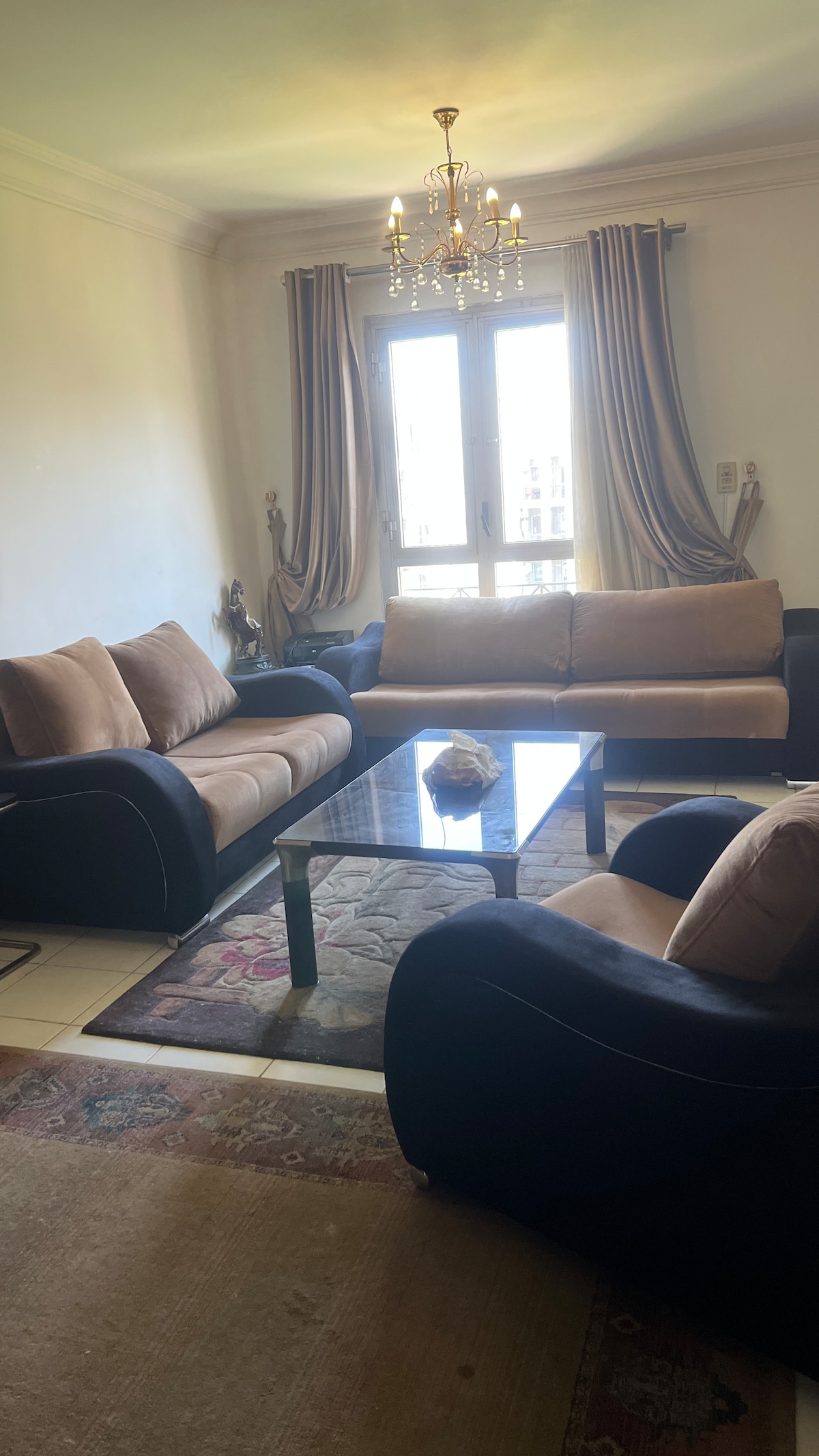 Welcome to my lovely Charming Luxury apartment! My Apartment located in Luxury safe Compound with very good wide Garden and Kids Area. Enjoy modern elegance 2 Bedroom , complete AC, and comfort. Stylish living area, fully equipped kitchen. You'll love the stylish décor and cozy atmosphere, which makes it the perfect home away from home. *High-speed internet. *10 mins to City Center Almaza Mall *15 mins Cairo Festival Mall *15 mins to Airport Book now for a delightful stay!