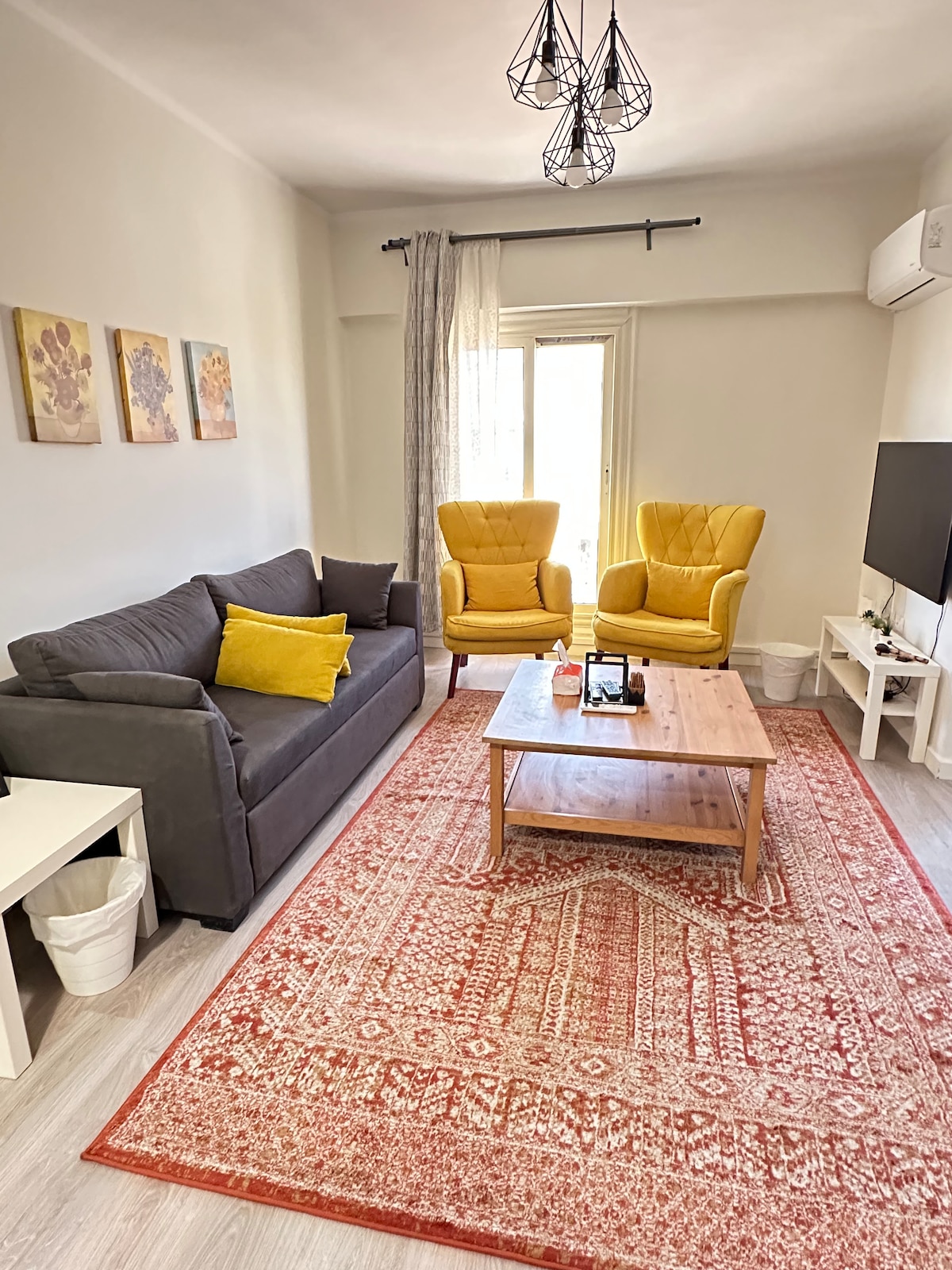 Enjoy watching the 55” Samsung TV and fast internet while sitting on the comfortable sofa. It is located in one of the finest gated communities in New Cairo. About 30 minutes from the airport. It is centrally-located in a walking distance to malls and the AUC. It’s located in Village Gate compound. It’s close to point 90 mall. Close to what malls can offer from supermarket, Cinemas, shops, Paul and fancy restaurants. About 42 km to the pyramids.