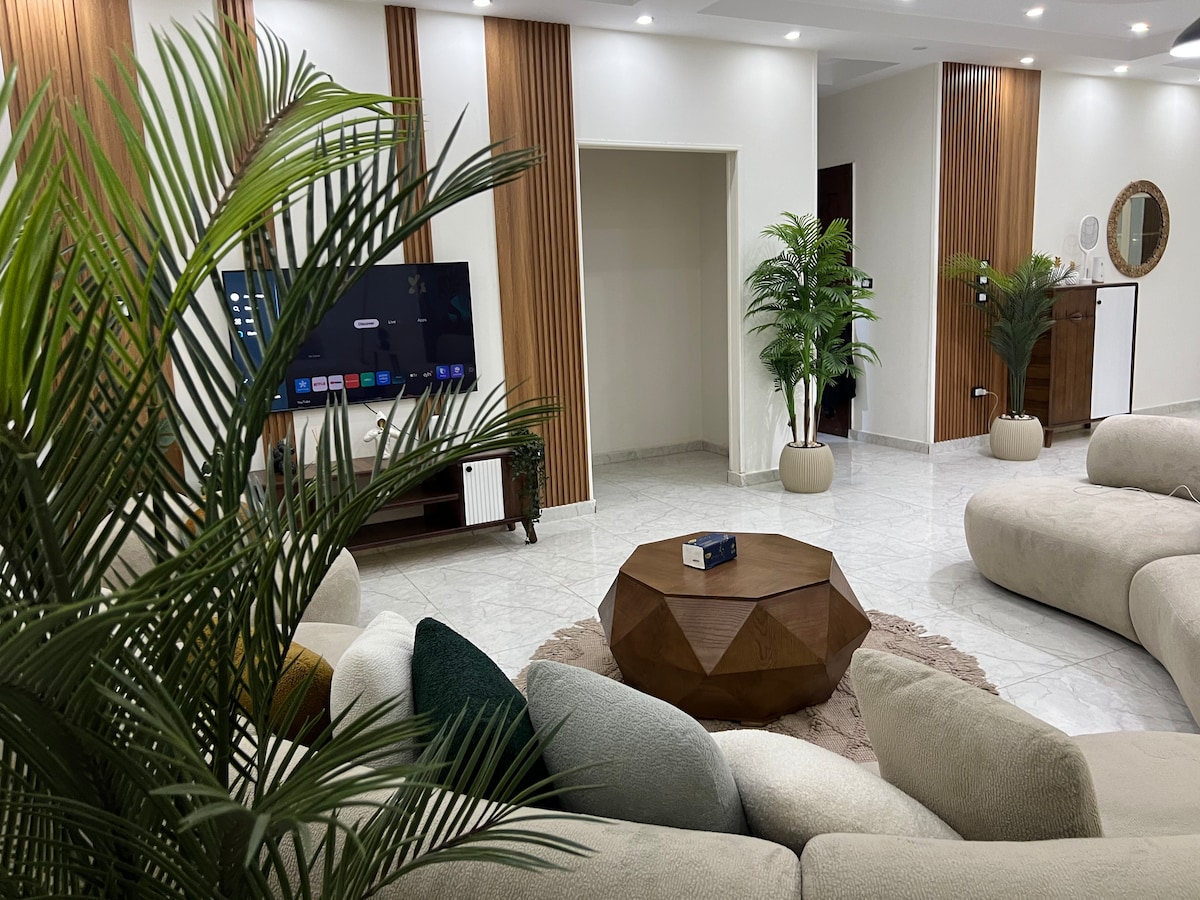 Experience modern boho luxury in this brand-new (Oct 2025) apartment located in the prestigious West Golf Extension, New Cairo — just minutes from 5A Walkway, Cairo Festival Mall, and Katameya’s vibrant spots. Enjoy presidential master bedroom, 4 Smart TVs, concealed A/C, electric shutters, and all-new appliances in a bright, elegant space. Perfect for guests seeking comfort, style, and an upscale Cairo experience.