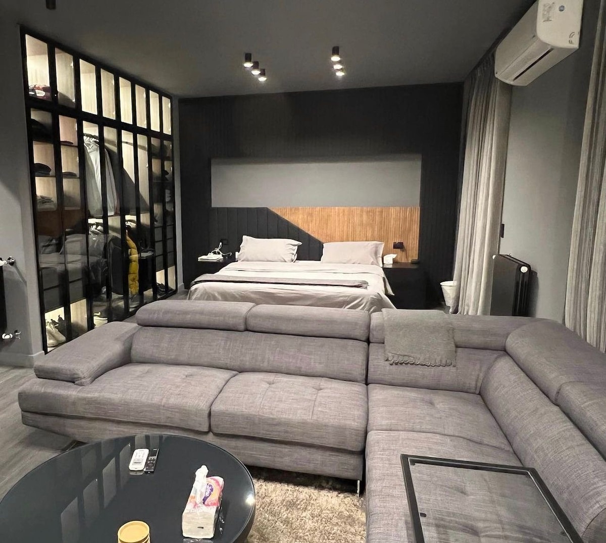 Themed minimalist design rooms with patio and pool access, designed and fully furnished to fulfil one needs. Unique location with clear routes and easy access to - Local market (5 min walk) - Bus station (5 min walk) - Downtown / Cairo festival City "Mega mall" ( 10 min walk ) - Soudi Market and 7 stars local mall. (10 min walk)