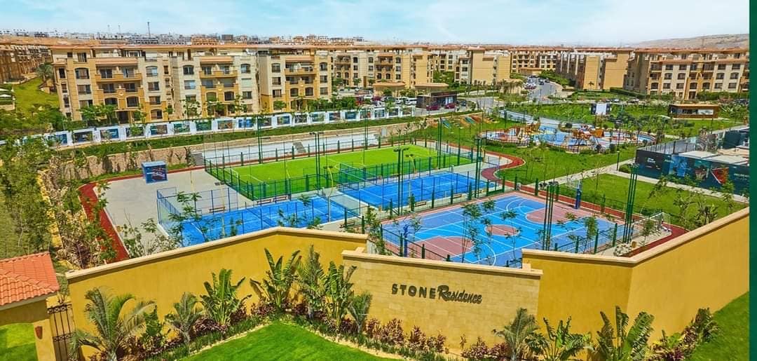 The ground apartment with private garden is located in a compound in the front a swimming pool. the compound includes 8 swimming pools, 14 lakes, a kid’s area, restaurant, cafe, a soccer field, a basketball court, security and 2 paddle courts. The compound is located 10 minutes away by car from both Cairo Festival City Mall (CFC) , District 5 malls and 20 minutes from Cairo airport. It’s also located directly on the ring road ( highway)
