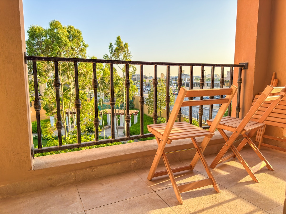 Stylish Two-Bedroom Apartment with Garden View Enjoy a comfortable stay in this beautifully furnished two-bedroom apartment. One bedroom is a master suite with a private dressing area. The apartment features two modern bathrooms, a fully equipped kitchen, a spacious reception area, and a balcony overlooking a lovely garden view. The unit is finished with high-quality hotel-style furniture, offering both comfort and elegance—perfect for families or business travelers seeking a relaxing stay.
