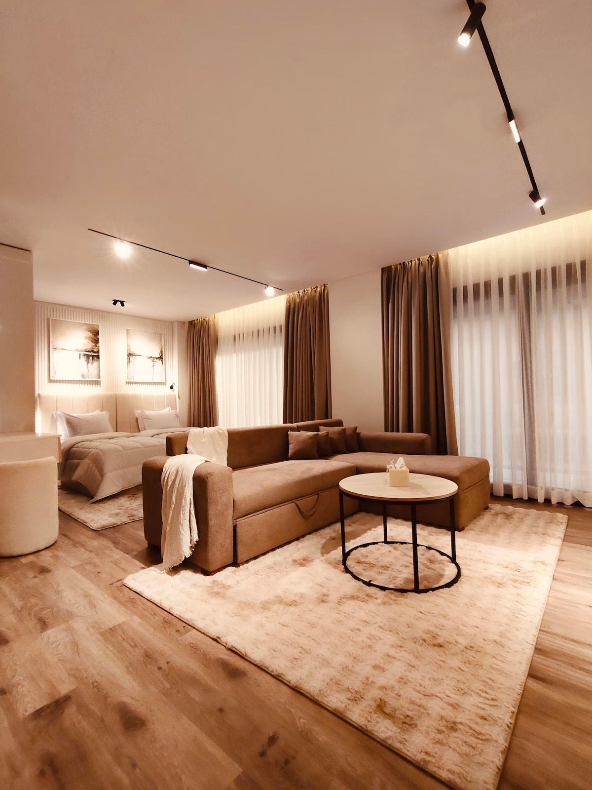 تبدو وكأنها وحدة خرجت للتو من مجلة للتصميم الداخلي، أليس كذلك ؟ هل يمكنك تخيل التواجد في واحدة من تلك الوحدات ؟ الآن أصبح الأمر حقيقة واقعة. جناح فاخر مفروش فرش فندقي بتيراس رائع لك وحدك مزود بجميع وسائل الراحة نعمل علي استقبالك بشكل احترافي وتحقيق اقامتك الفندقية. قريب جدا من مجمع كامل من مطاعم وكافيهات وبراندات عالمية قريب من مول بوينت 90 - شارع التسعين تم الاعتماد على البساطة في هذا المسكن الهادئ والاستراتيجي. حي اسكان الجامعة الامريكية من ارقي أحياء التجمع 5 - يتميز بمستوى معيشة راقي