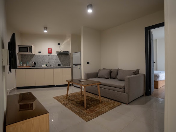 Luxurious suites directly infront of the american university and a minute walk from point 90 mall. The suites features a fully equipped kitchenette. A gym and restaurant are available at the suites. The reception is 24/7.