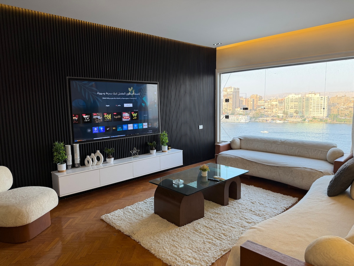 A spacious, modern Nile-front apartment featuring three bedrooms, a fully equipped kitchen, and a spa-like bathroom. Enjoy breathtaking panoramic views of the Nile from the private balcony, all while surrounded by luxurious hotel-grade furnishings and a sophisticated design.