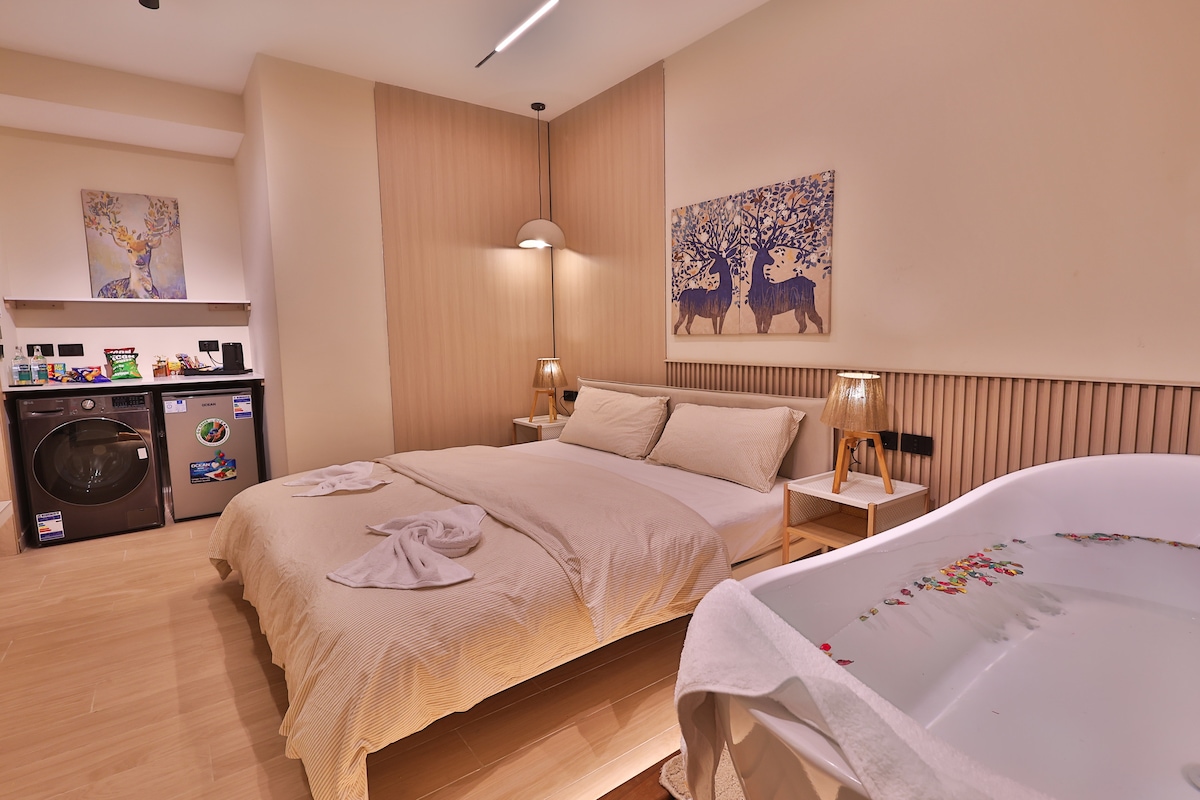 靠近City Stars购物中心的豪华单间公寓,配备浴缸