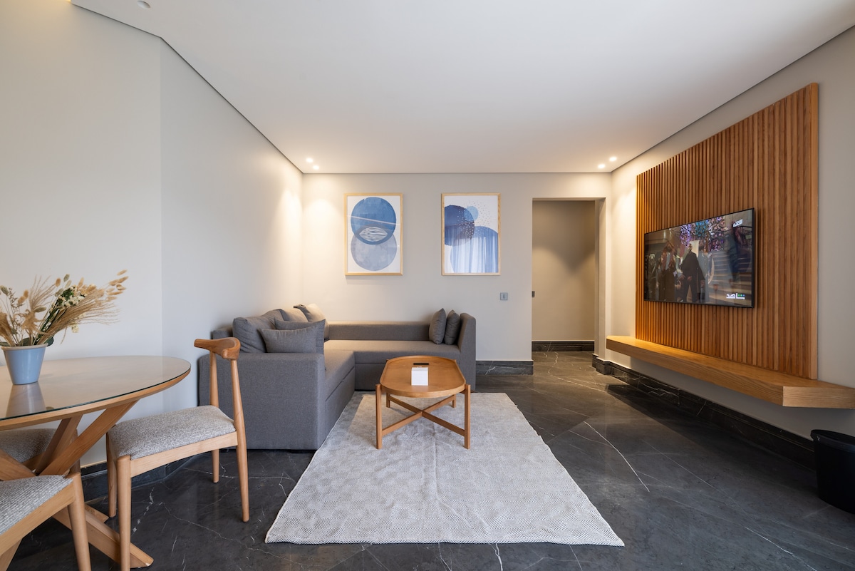 This spacious apartment is fully furnished and equipped with everything you need for a comfortable stay. Relax and watch your favorite movies and TV shows on the sound system with access to Netflix, beIN Sports, Shahid, Watch it, and Starzplay. Located in a central location, close to all the major attractions. Just a short walk for bus station , the shops, and the restaurants. Whether you're traveling for business or pleasure, this modern, stylish apartment is the perfect place to stay.