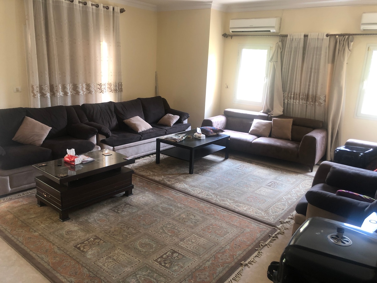 Elegant, very unique and relaxing vacation house with an amazing wide view garden. 1min walk from pharmacy & market. 5min for All Season Park including medical care, Restaurants, Carrefour. 5 min to East Hub and Craft zone 10 min for Open Air Mall & Arabesque Mall, 8 min away from the main bus station. Transportaion are available around the city buses and cars for other activity/ entertainement areas. 30 mins away to Cairo International Airport. Picking up from the airport is available.