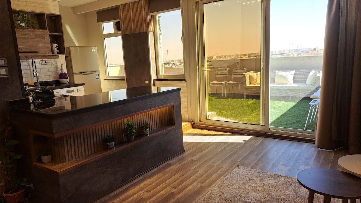 🌿 Stay at the Boho Rooftop Nest, a private studio in New Cairo’s secure Compound, right across from Rehab City. Enjoy a cozy boho-style design, spacious private rooftop, smart TV, WiFi, and a handy kitchenette. The compound offers pool, gardens, a mosque, and 24/7 security. Close to malls, cafes, and the airport, it’s the perfect retreat for couples, solo travelers, or business guests seeking comfort and privacy.