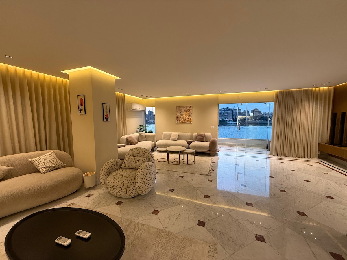 Enjoy a stunning panoramic Nile view from this bright 2-bedroom Zamalek apartment. All furnishings and appliances in perfect condition. Sleep peacefully in quiet rooms, and cook easily in a fully equipped kitchen—just like home. Simply pack your clothes and let us handle the rest for a unique and comfortable stay.