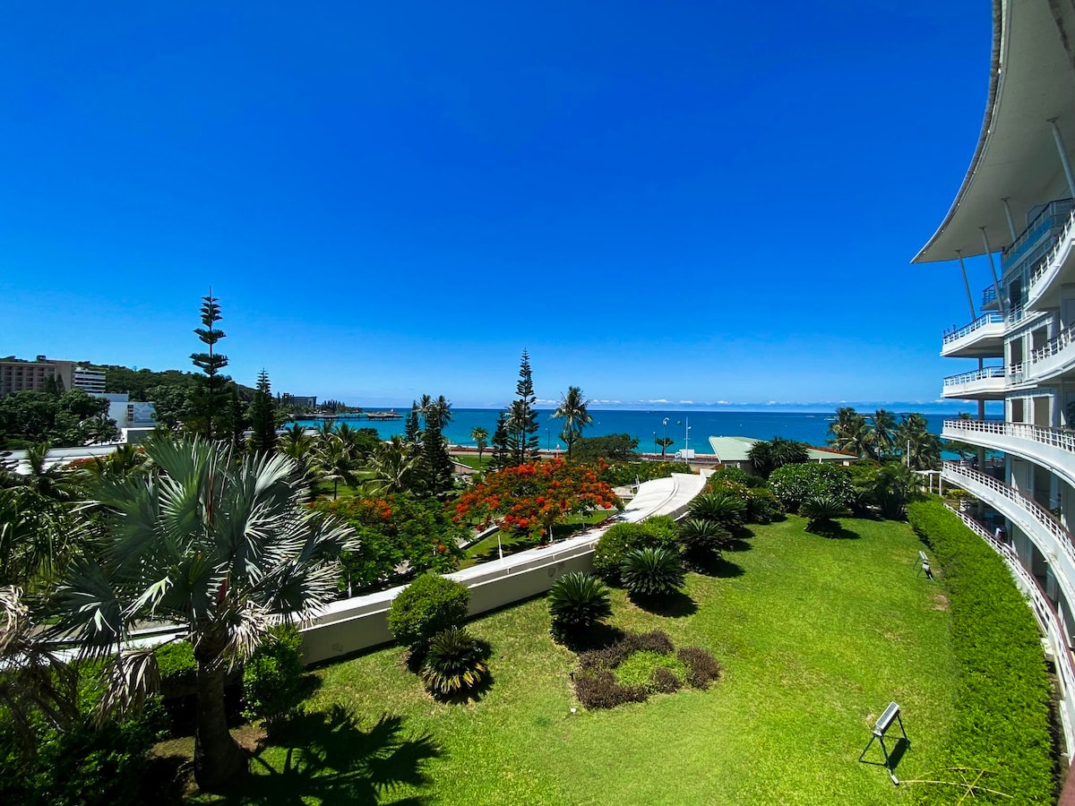 Appartement avec piscine, proche plage, commerces, restaurants et bars - Nouméa. Séjournez dans ce bel appartement situé à Nouméa, à quelques minutes à pied de la plage et des commerces. Profitez d'un cadre calme et lumineux. L'appartement est entièrement équipé avec une cuisine, un salon dont un canapé lit pour 2 personnes, une grande chambre (20m²) avec un lit King size et 2 balcons situés au 1er étage avec ascenseur. Wi-Fi, climatisation, brasseurs d'air, machine à laver, parking gratuit.