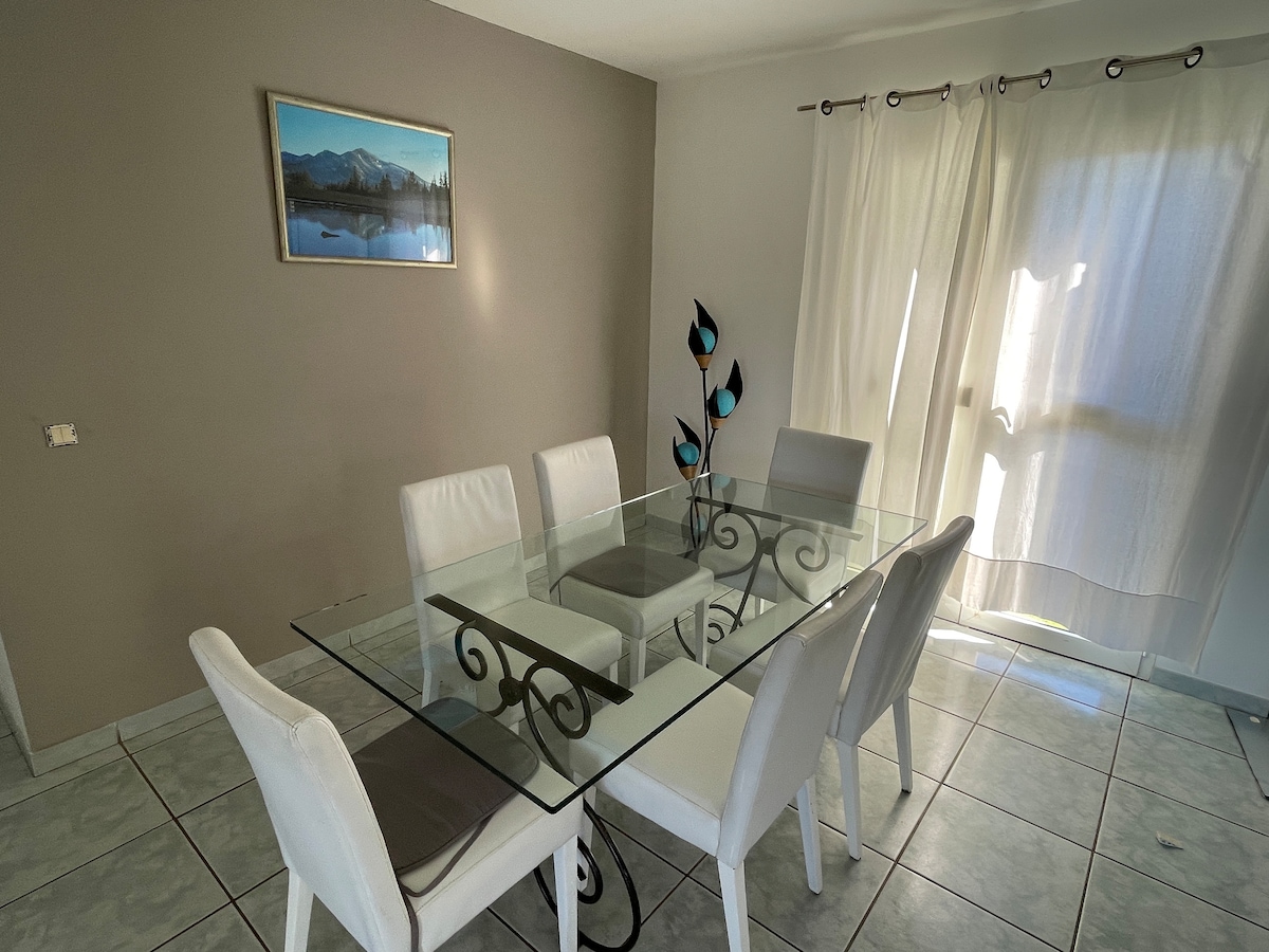 In its green setting, this spacious accommodation offers serenity and calm. With its swimming pool, barbecue area and large garden, you will enjoy a relaxing stay in a friendly atmosphere. Close to all amenities (supermarket, shops, doctors, trampoline, go-karting, Olympic swimming pool ...), you can leave from this villa to discover New Caledonia or meet family and friends.