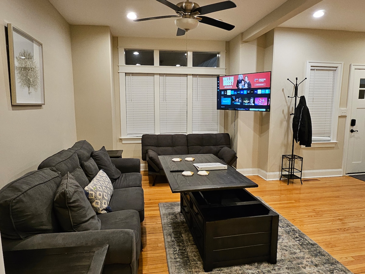 Just minutes from U of D and the Bob Carpenter Center, tax free shopping at the Christiana Mall, and scenic walks at Rittenhouse park. A perfect oasis for the whole family to enjoy with a touch of sophistication for any business trip. Enjoy 2 floors of entertainment space with 2 50' TVs, Foosball Table, and a Dartboard to pass the time. A coffee bar will help kick start your day, while the complementary bottle of wine will help you relax at the end.