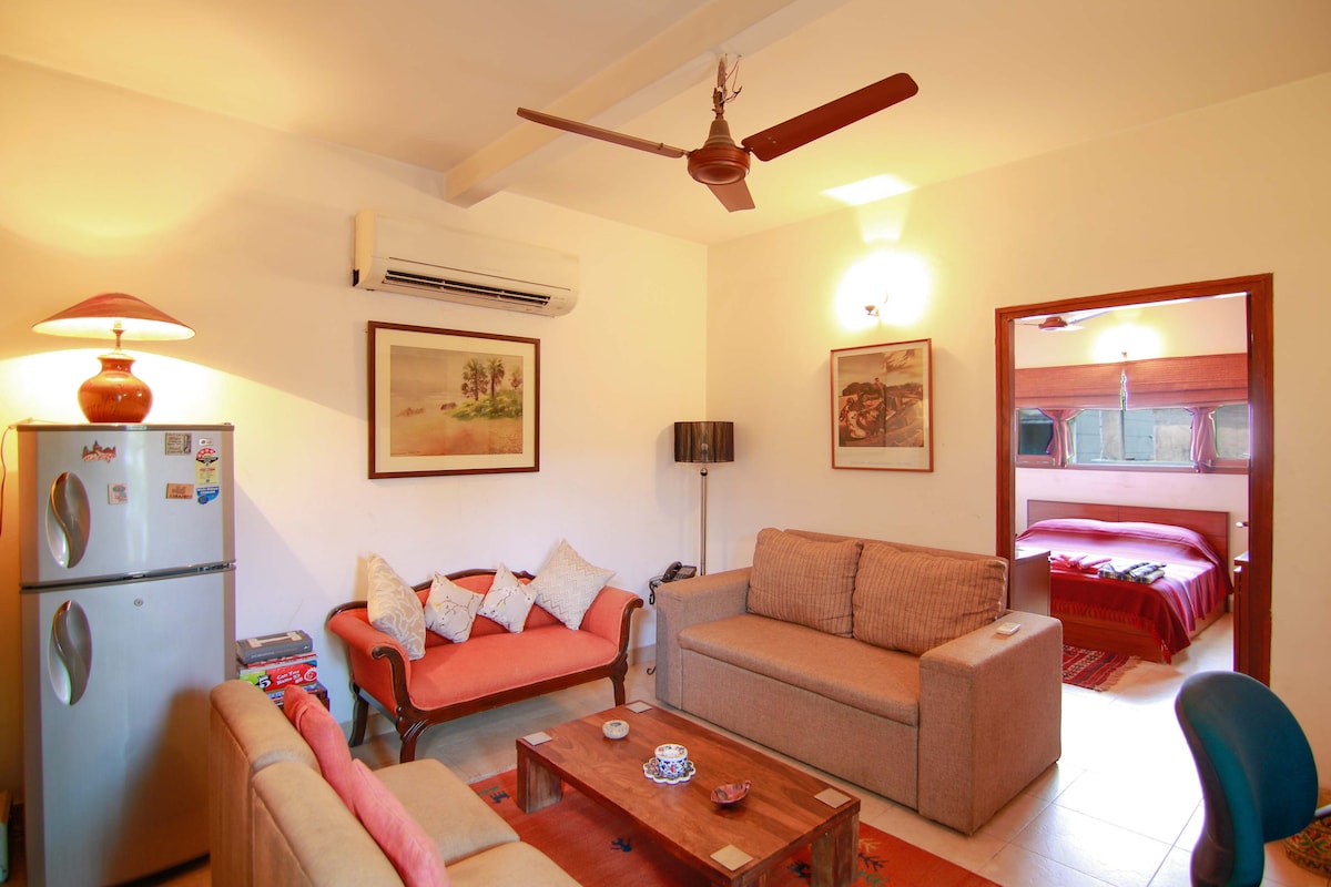 Do you want to bond with family, friends or colleagues in the lap of nature in New Delhi? Do you wish to experience the ideal blend of old-world charm and hospitality with all modern amenities? Do you desire to take a stroll in sprawling lawns under fruit trees or lie in wait for peacocks? If YES then this independent 3-bedroom apartment of Shiv Niwas villa, with private balconies & roof terrace, smart locks, property-wide high-speed Wi-Fi, free car parking & caring lady caretaker-cooks BECKONS!