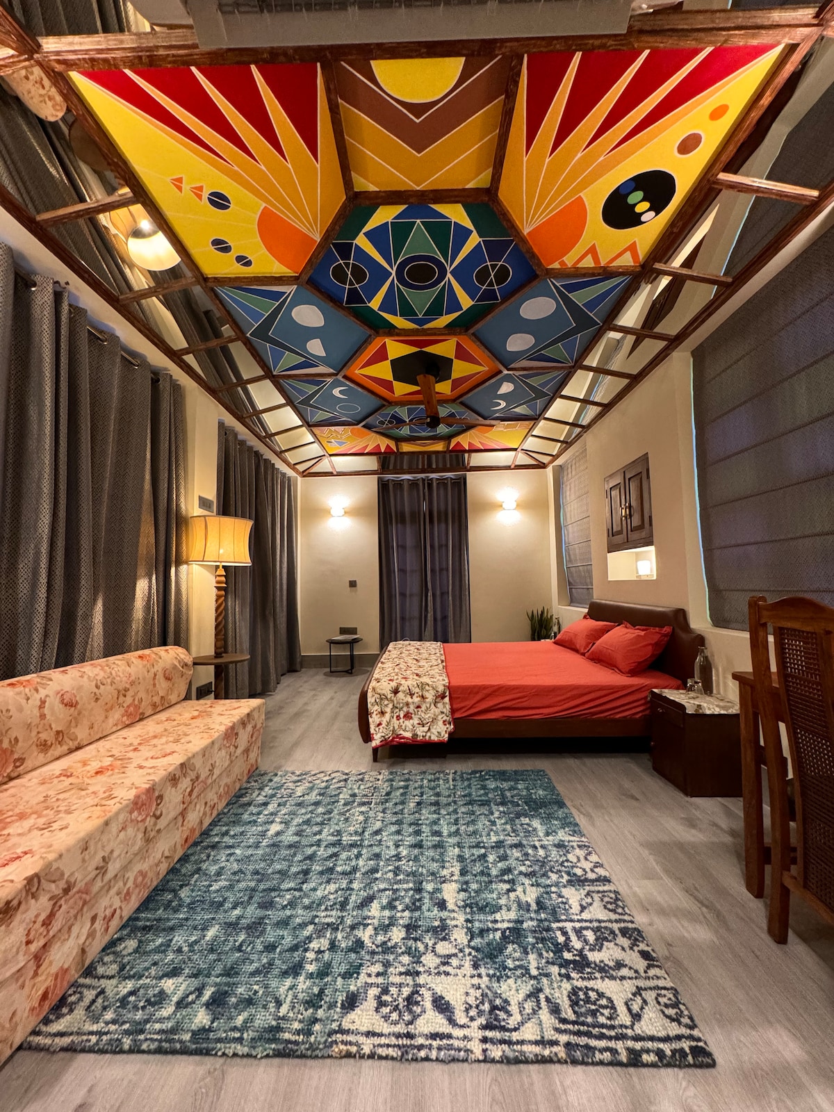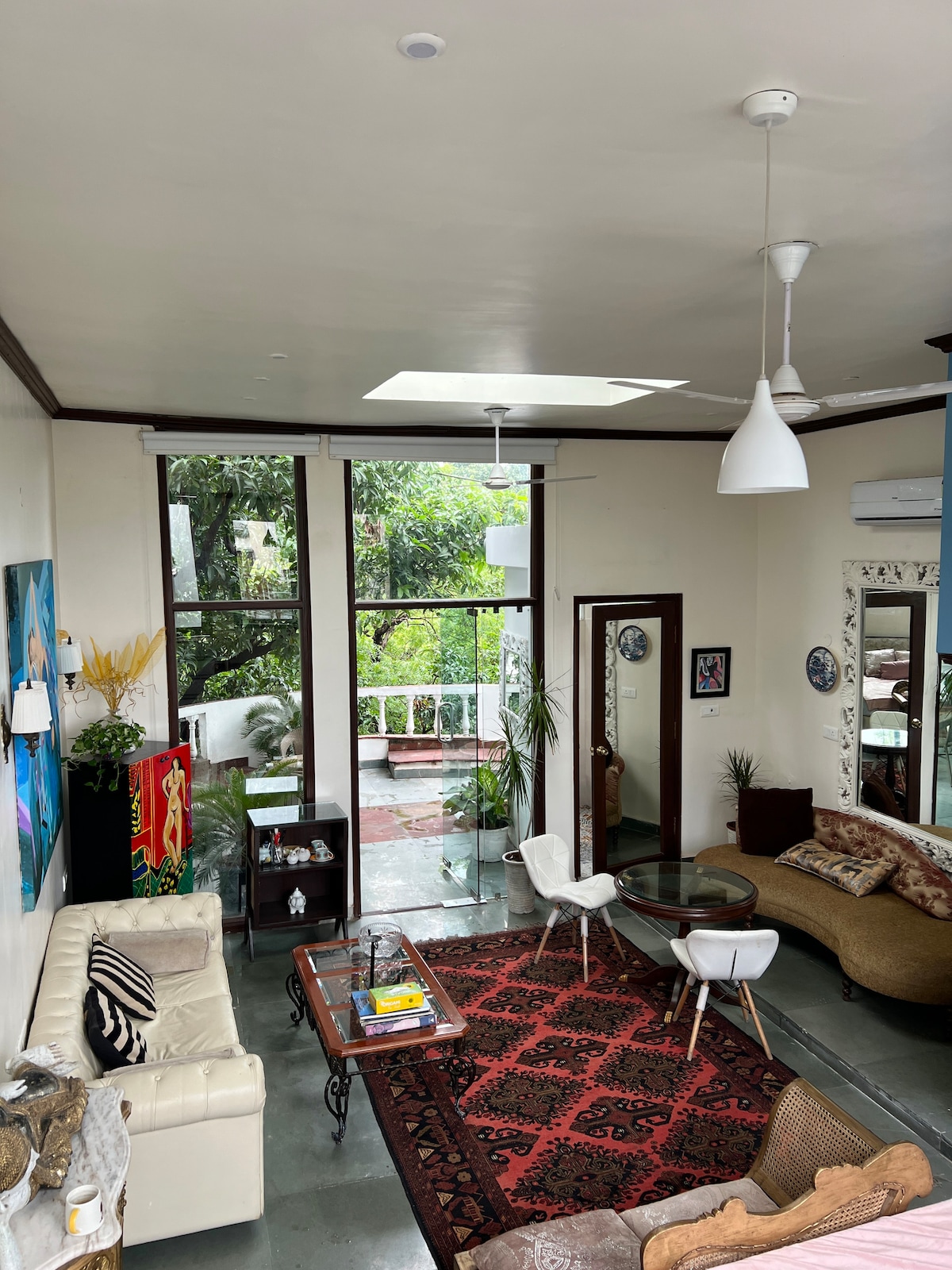 Call it stylish and spacious at this centrally-located barsati(rain room on top of the house). This chic room is on level 2 of our haveli which is more than 150yr old, Situated 100mtrs away from green park metro station. Yes! You read it right. Only 100mts away. In the middle of ever buzzing south Delhi, we offer a quite and quaint open space where you can relax, rejuvenate and feel inspired. Our panoramic balconies take you back in time, to reminisce the good old days. Disclamer: HIDDEN GEM !!