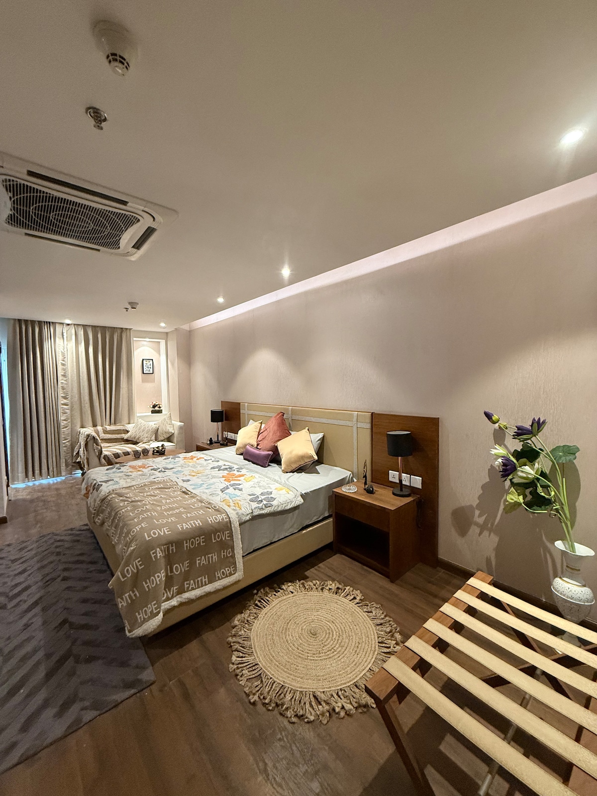 Indulge in the epitome of sophistication in this luxury studio apartment in the heart of South Delhi in Saket. Nestled in a prime location, Enjoy a tastefully furnished space, complete with luxurious decor and ample natural light. With a King Size Bed, Large screen 43" Smart TV, Fully functional pantry and a stylish washroom, every detail caters to a refined lifestyle. Immerse yourself in comfort & convenience. Welcome to a blend of luxury and urban living
