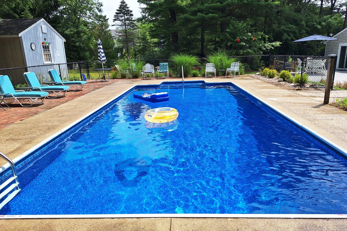 Enjoy the Barnstable historic seaside village of Cotuit in this sprawling house with central air, nestled in the pines on a quiet street with private gated (unheated) pool, lg. backyard, firepit, ample parking, just blocks from Main St, Ropes Beach, scenic ocean views, fort playground, and Kettleer baseball. Each bedroom has a TV and ensuite bathroom! Relax in the seasonal sunroom overlooking the pool; grill burgers on the patio. Max. 9 (6 adults). Pool open 6/20-9/15/26. The reviews tell all!