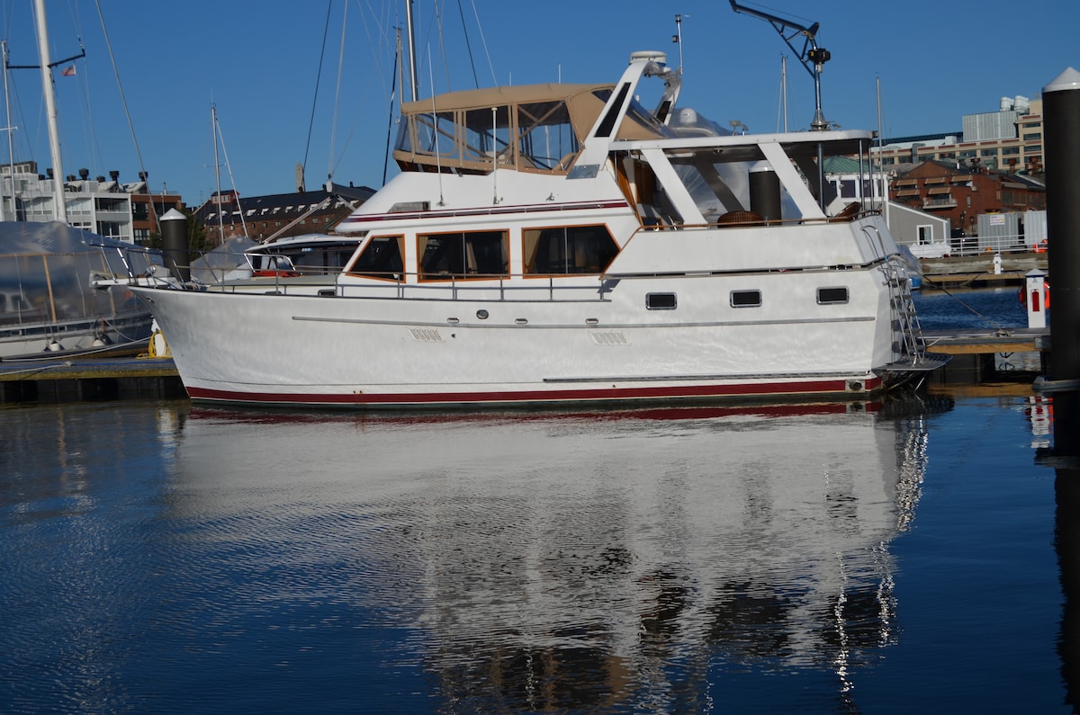 Come stay aboard the Green Turtle II 45 foot yacht in the historic Navy Yard in Boston Harbor. What a fun way to visit the great city of Boston! It is like taking two vacations in one. Visit the city sights and then come back to the boat and relax and enjoy the peace on the water. Restaurants within walking distance. Parking on pier at $28 per day and garage at end of street. Coffee, tea, sugars, cream, juice, waters provided.