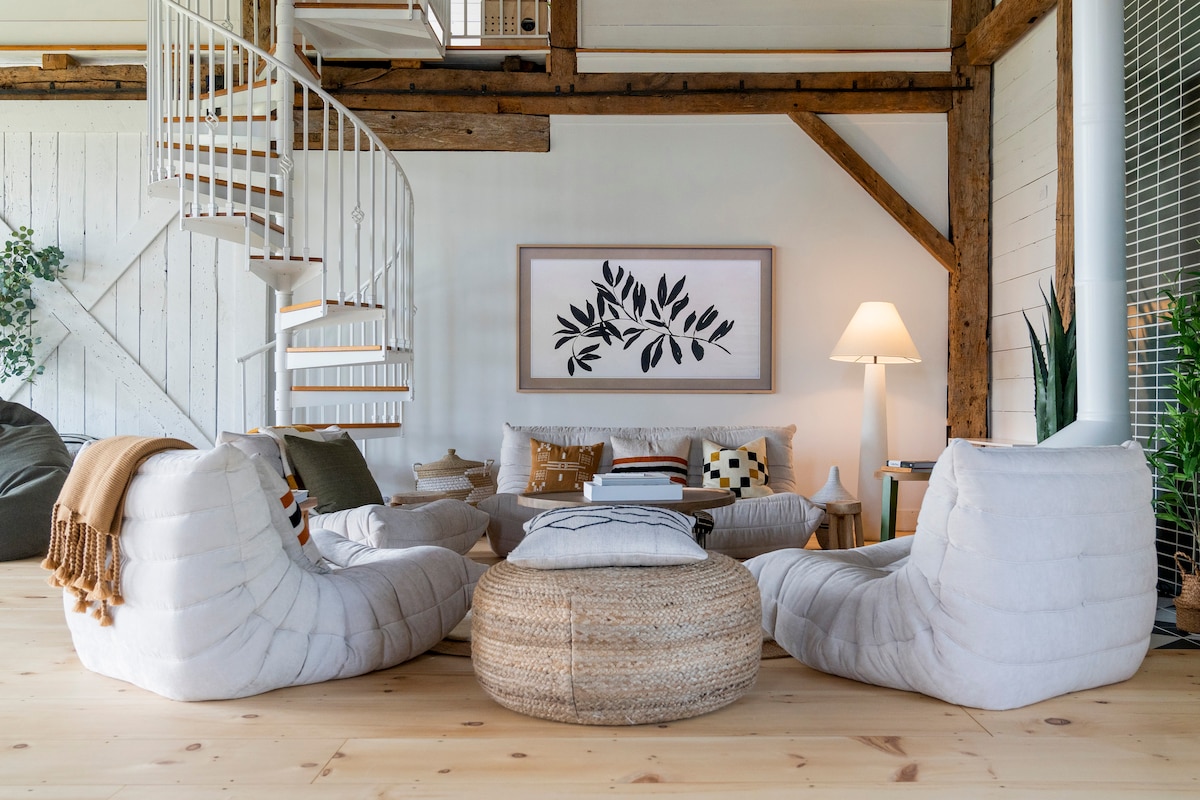 Exhale and recharge in this luxurious space at the foot of the Shawangunk Mountains. This gem features an open-concept kitchen and living room, perfect for connecting with nature. Enjoy the high-end Foster Leather Sofa, cozy movie nights on a 120" projector screen, and a wood-burning stove for chilly evenings. Every detail, from fresh linens to a meaningful library, is thoughtfully curated. Discover hidden messages throughout the house, inviting you to explore and unwind in this serene retreat.