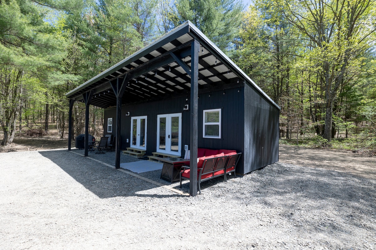 Hunter Mnt opens Nov 22! Great Natural Light + Amazing Views + Plastic Free Building + Fresh Air System + Walk-in Shower with Skylight + Pellet Stove + Deck with BBQ + Outdoor Shower + Fire Pit + Sunny Location + Noon Checkout *** Next door is its twin brother called Max: airbnb.com/h/themaxcabin *** Each cabin has its own private entrance. Along with amazing views to the slopes of Hunter mountain come enjoy the thermal comfort, a modern and cozy at home feeling