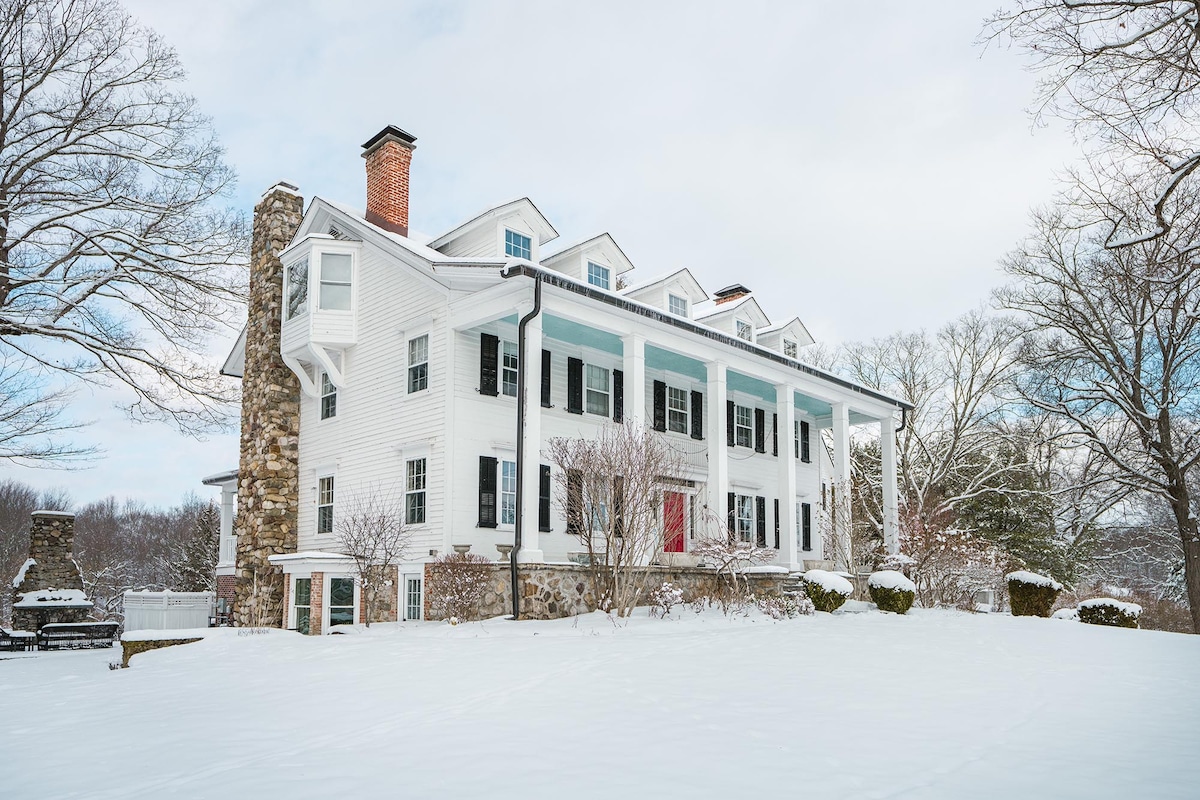 Serene, elegantly appointed 19th century compound, fully modernized and set on the edge of a 50 acre land preserve next to boat friendly Bantam Lake. Located in the rolling hills of Litchfield County this expansive home has four buildings and every amenity: pool, hot tub, heated gym, cedar sauna, central AC, 2 chef’s kitchens, game barn, primary suite with wb fireplace and soaking tub, a pool house guest suite with steam shower, & treehouse w/ slides & a swing set built on a 300yr old oak tree.