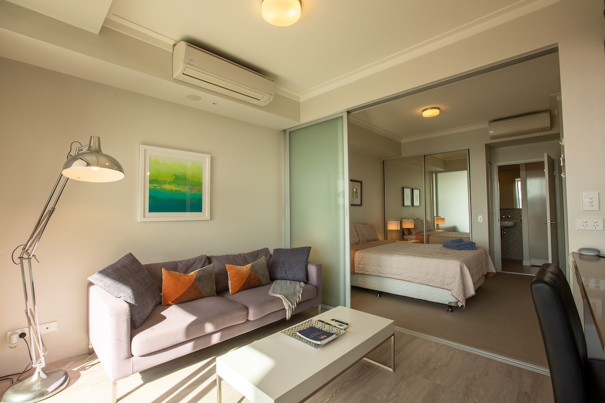 Our stunning riverview & botanic-garden view king-sized one bedroom apartment is perfectly for short term and long term stays. Situated in inner CBD, Brisbane’s SkyTower building is close to everywhere! Apt features include: -Spacious bedroom with King size bed and built in wardrobe. Fresh towels and linen provided. -Sofa bed in living area -Central air conditioning -Gas stove top with full chef’s kitchen -Hide away laundry area -Washing machine and dryer -Coffee machine -Smart TV -Free WIFI