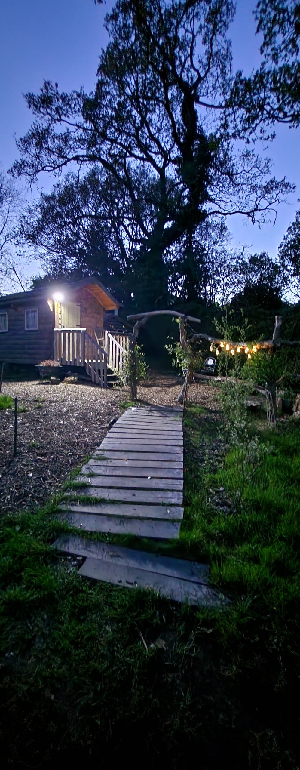 Get away from it all and create romantic memorable moments in your rustic Acorn Hut. Step outside and be enveloped by nature and enjoy sitting in front of a fire pit or have a BBQ or a relaxing hot tub (EXTRA CHARGE!). Acorn Hut has everything you need to stay comfortably and is particularly suited for nature lovers. Its small Hobbit wood burner will keep you snug and warm on a cold evening. Toilet / shower are only a few meters away. One photo shows its location to other cabins / Horton Road.